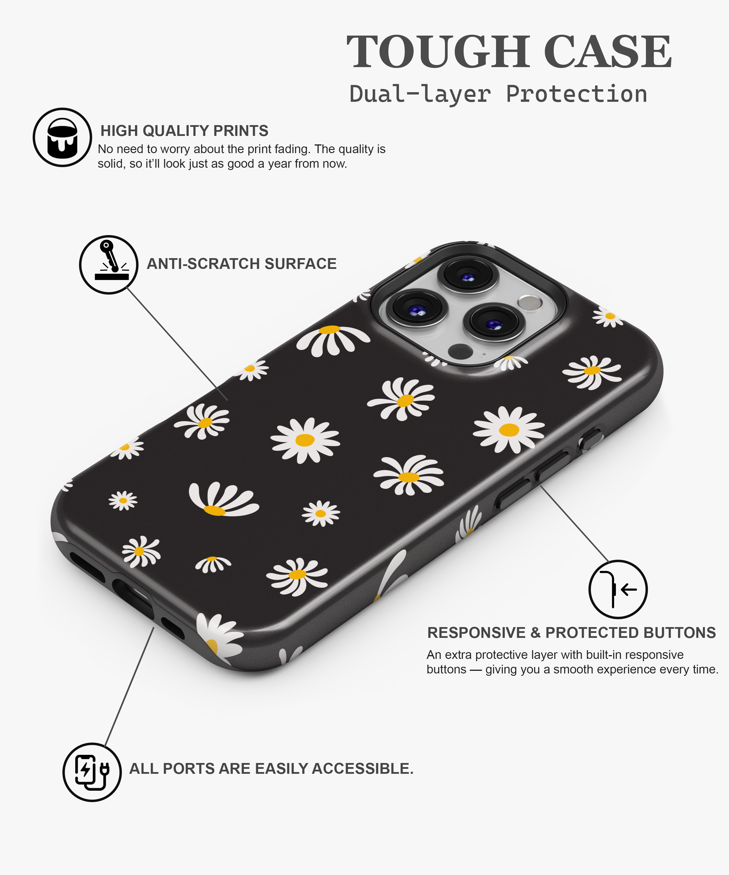 Black Yellow Daisy Phone Case | FireBornGuard Tough Case Cover