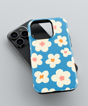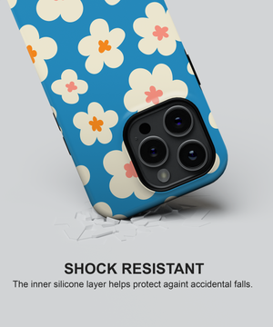 Creamy white daisies in pink and orange scattered on ocean blue—like wild coastal blooms catching golden hour light over endless waves, this phone case design brings the uplifting memory of seaside mornings filled with fresh salt air and vibrant natural beauty.