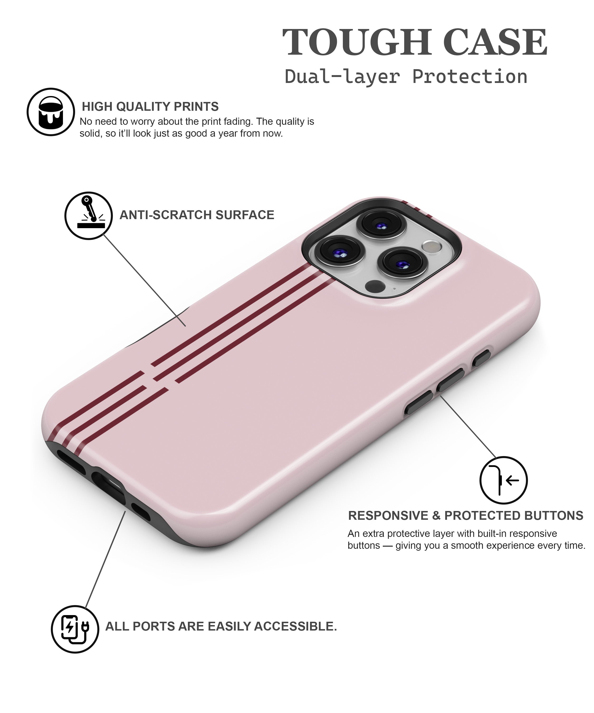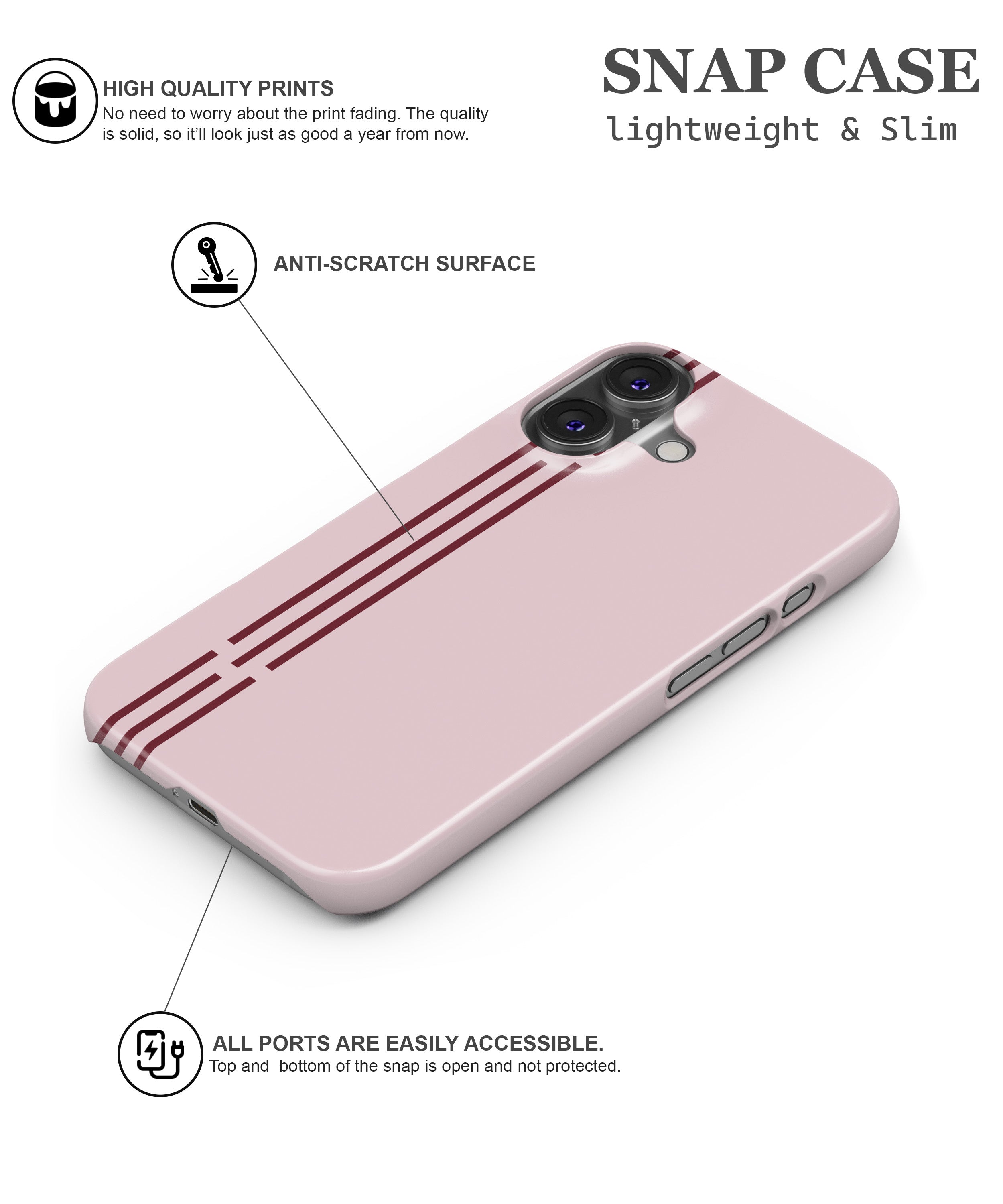 The Blush Line Case is defined by soft tones and clean linear details that create a calm, refined look. Minimal yet expressive, the design adds a subtle statement to your phone while maintaining a sleek profile suited for everyday style and effortless use.
