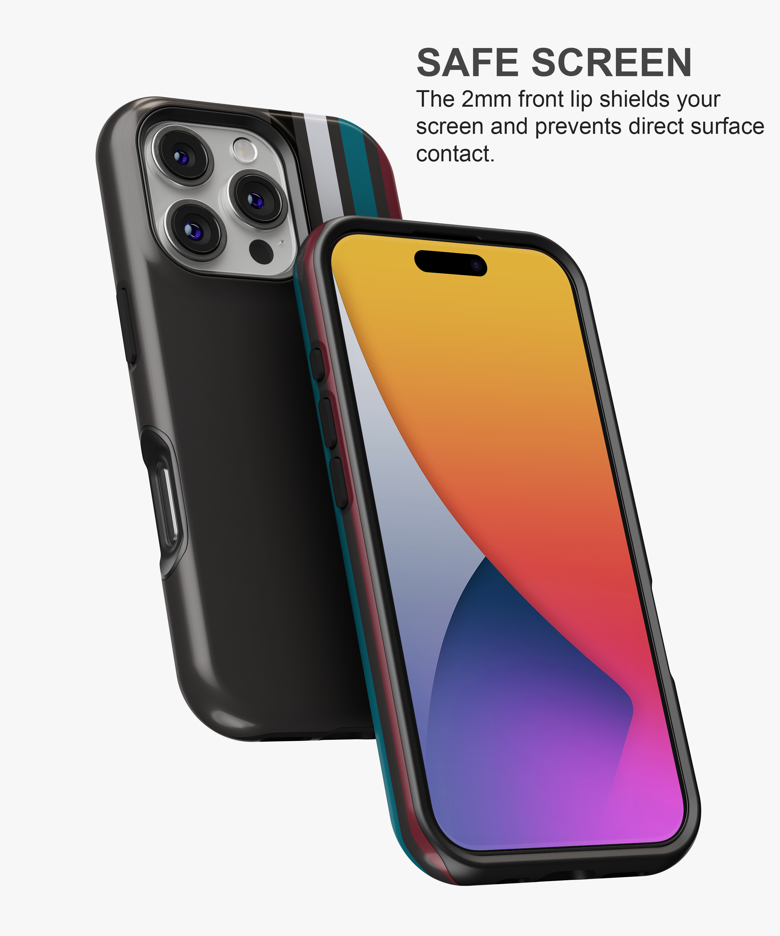 ⟶ All our cases come with elevated bezels around the camera, ensuring it never touches surfaces when laid flat on its back.