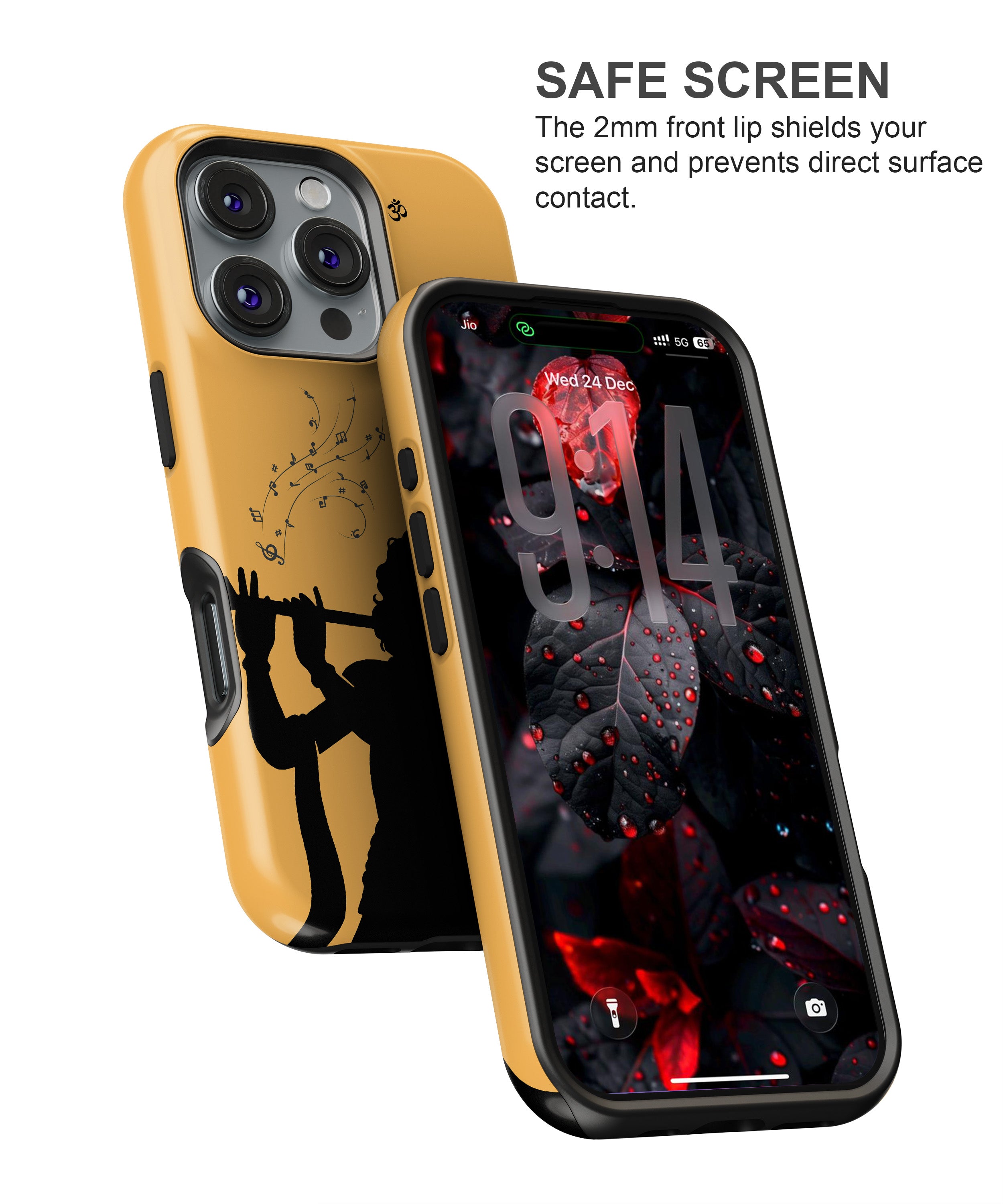 The Divine Melody Lord Krishna Case is inspired by the timeless calm and grace of Krishna’s flute. The flowing musical elements and minimalist silhouette create a peaceful yet expressive design, turning your phone into a refined statement that blends spiritual art with modern everyday style.