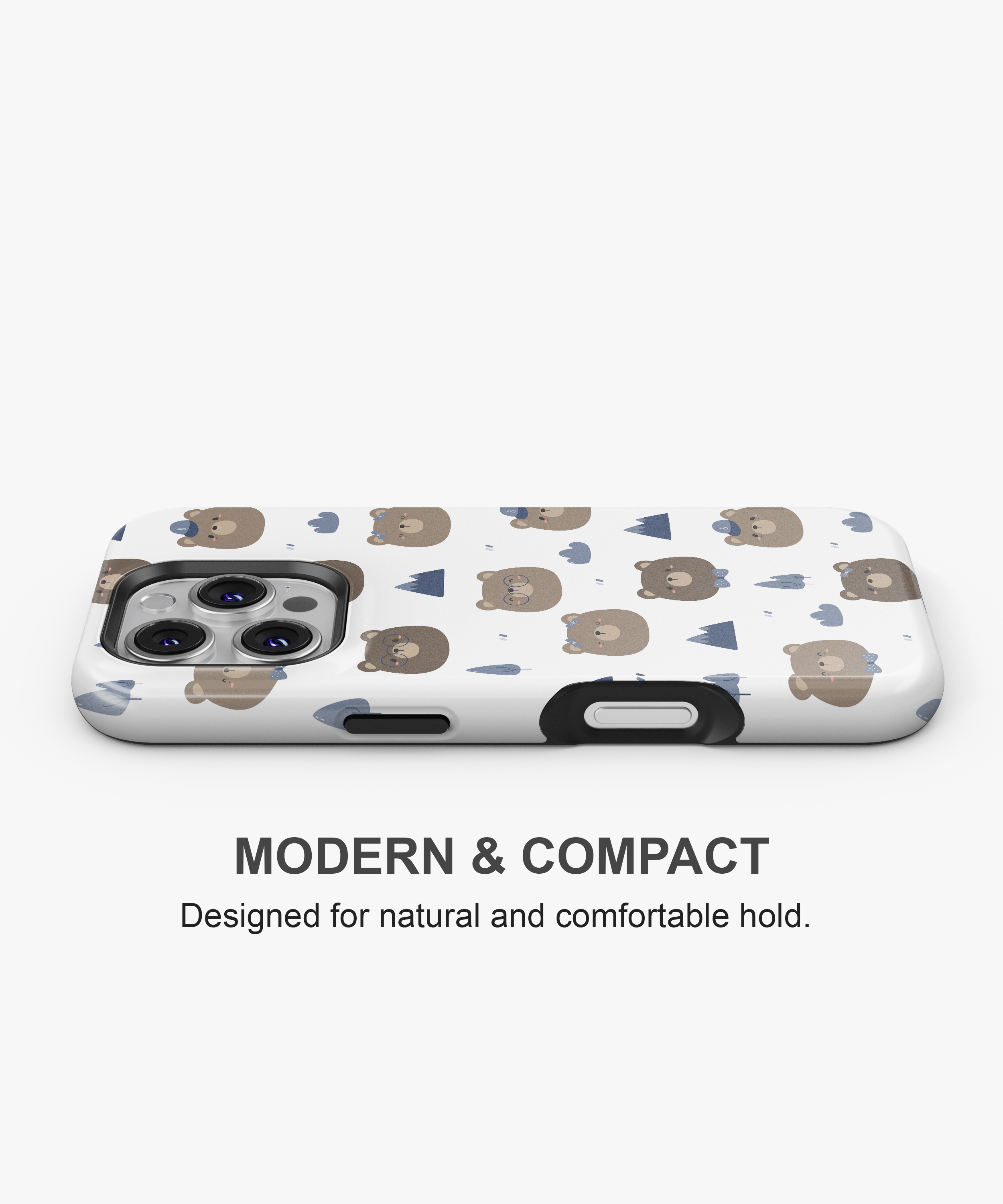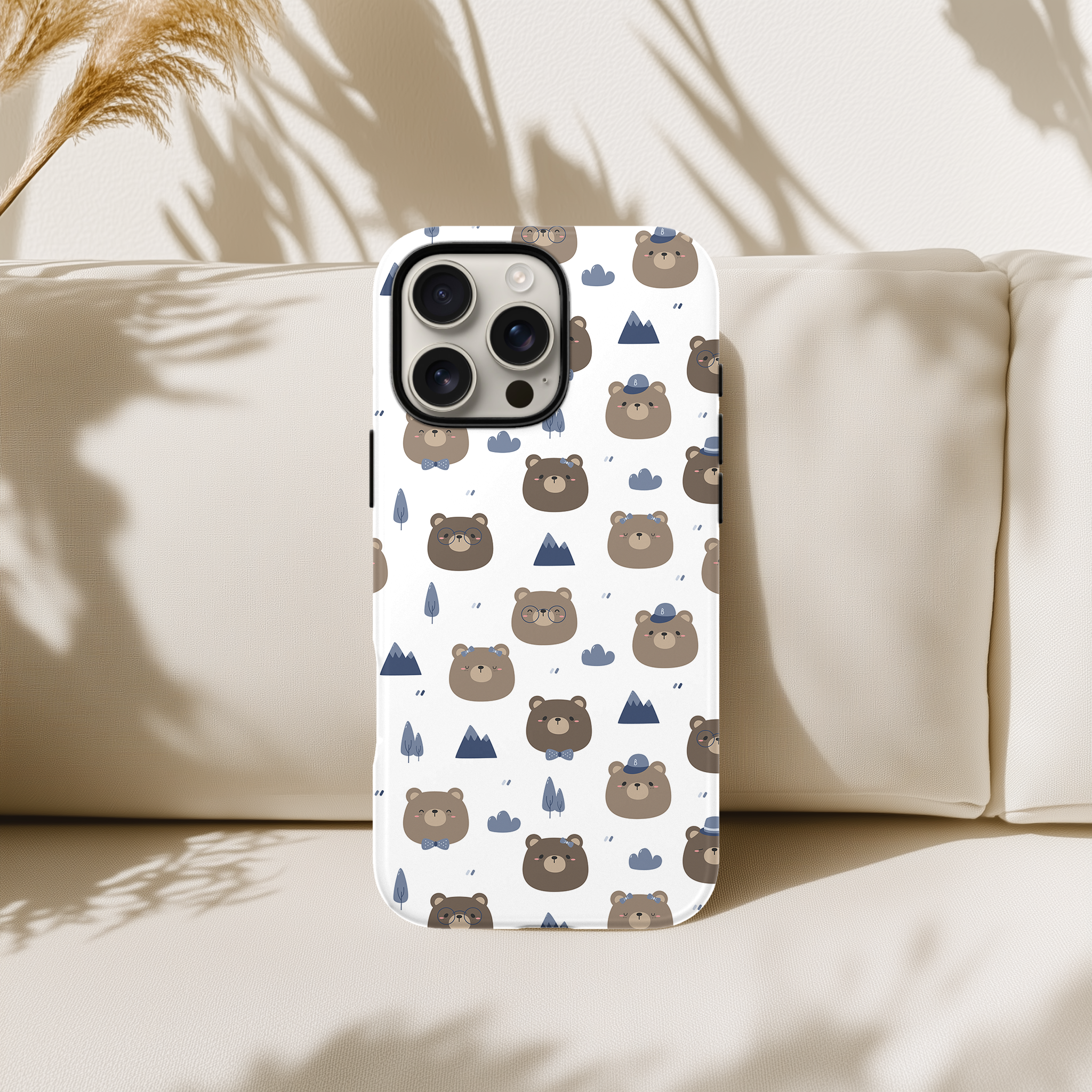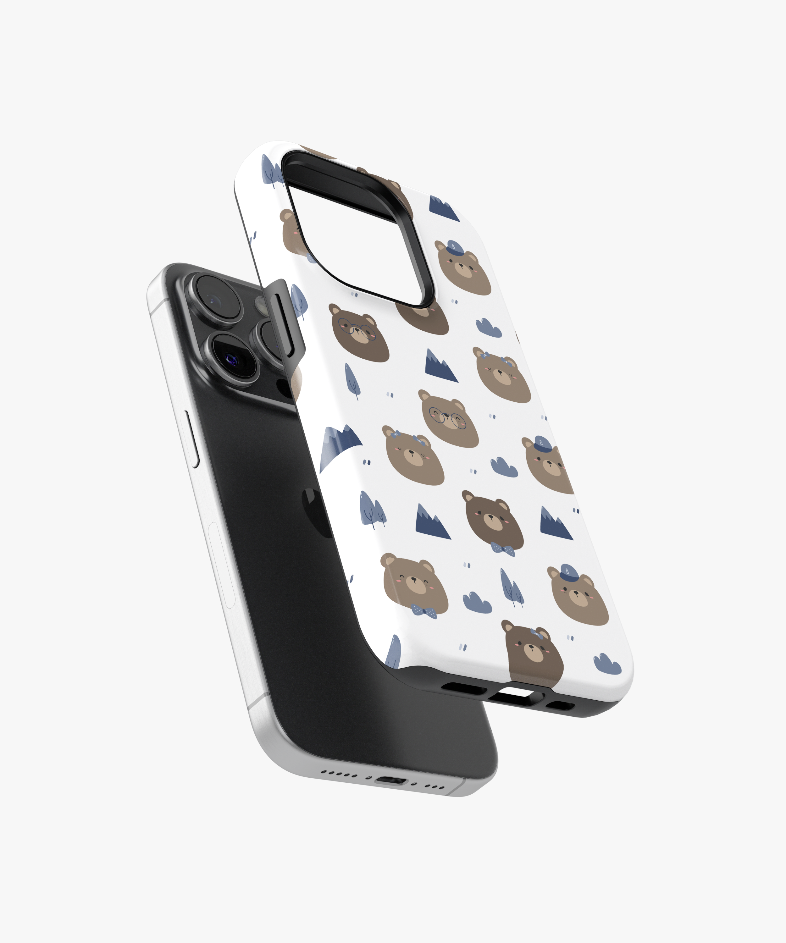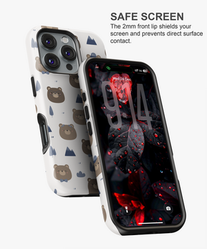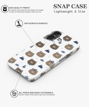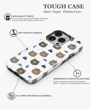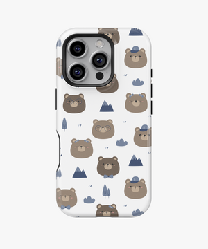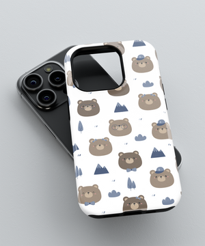 Kawaii Bear Camper Phone Case – Cute Brown Bears, Mountains and Trees on White