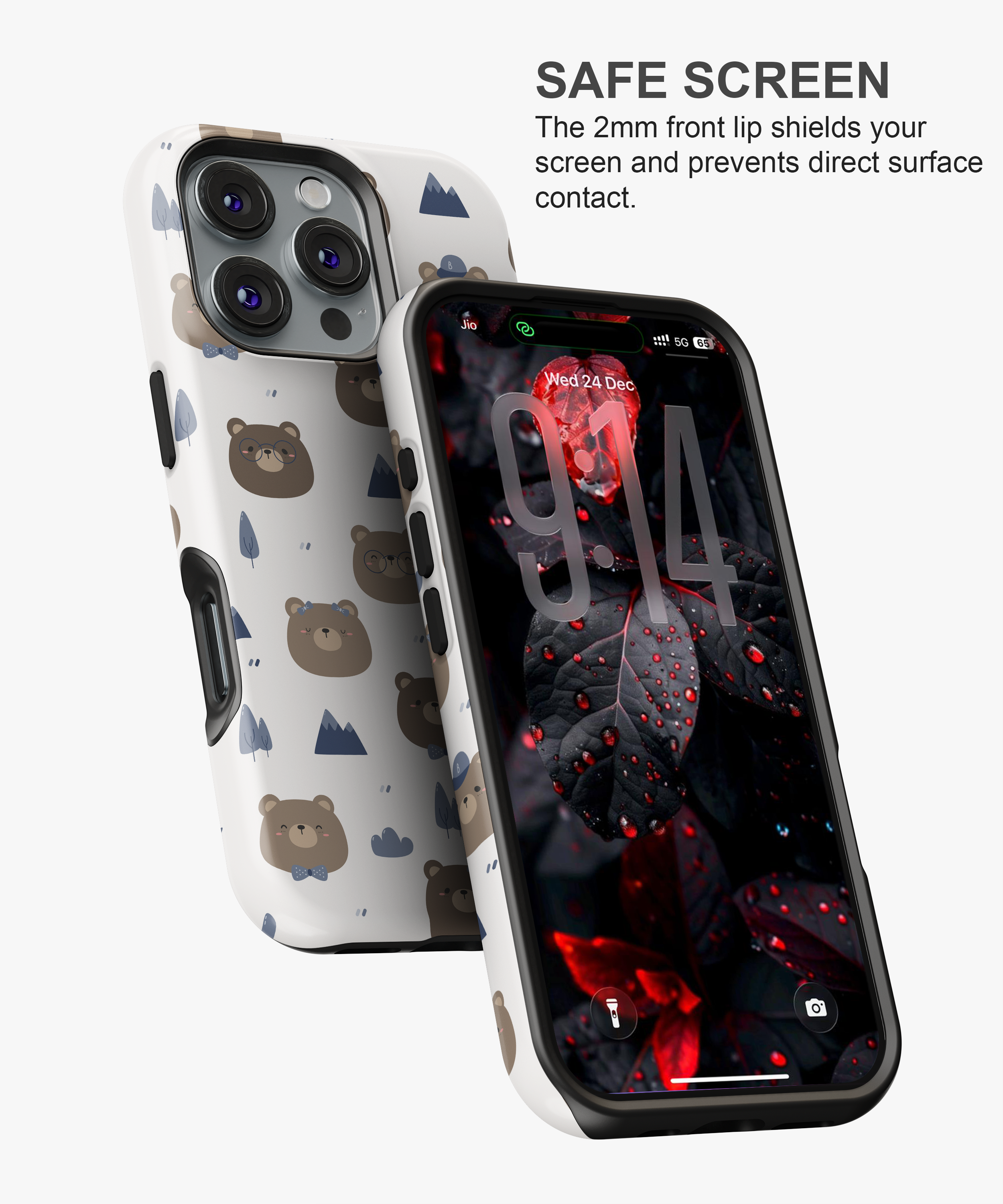 ⟶ All our cases come with elevated bezels around the camera, ensuring it never touches surfaces when laid flat on its back.