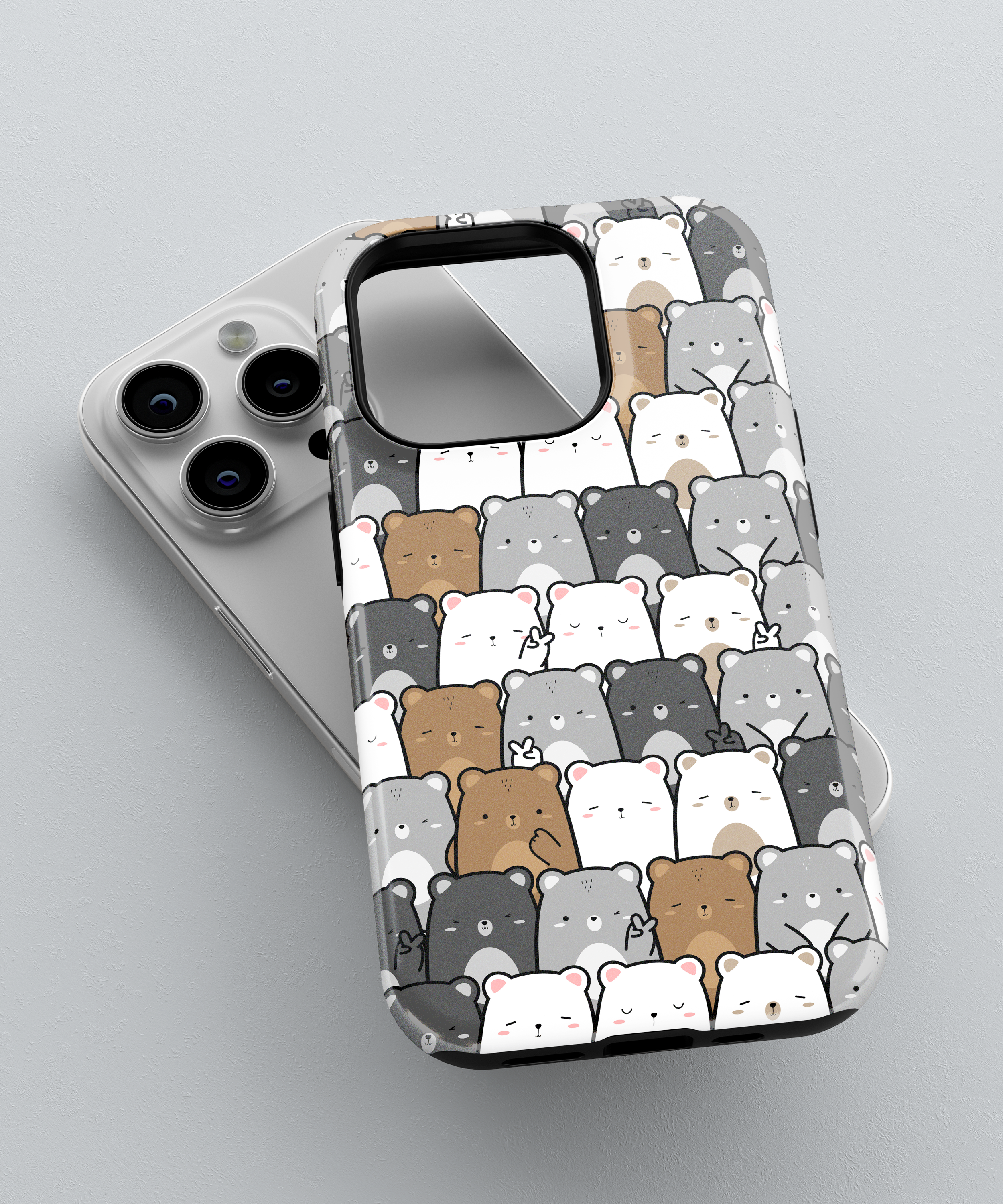 Kawaii Bear Crowd Phone Case – Cute Neutral Bears on White