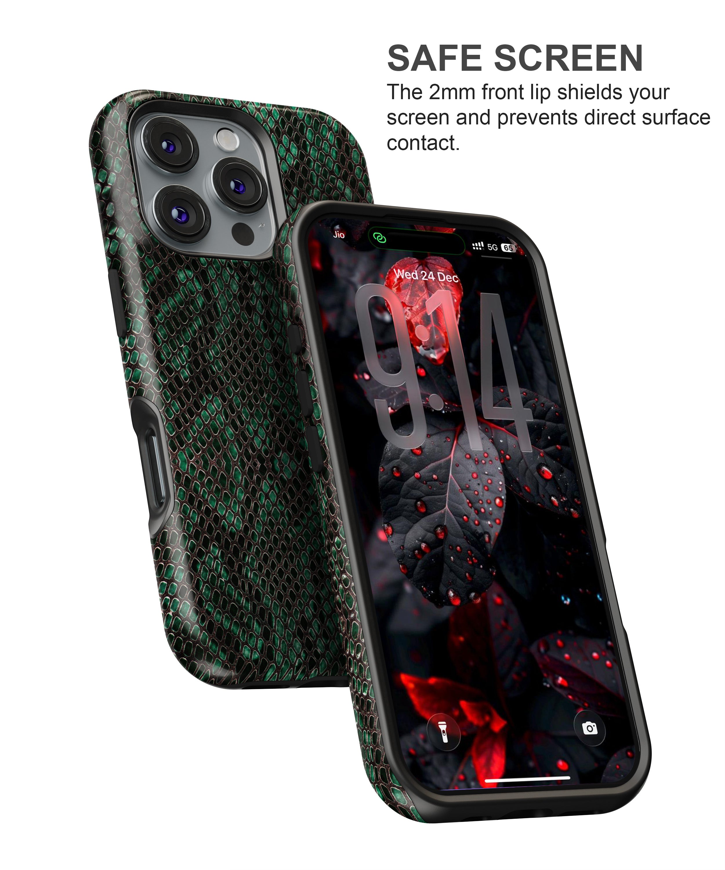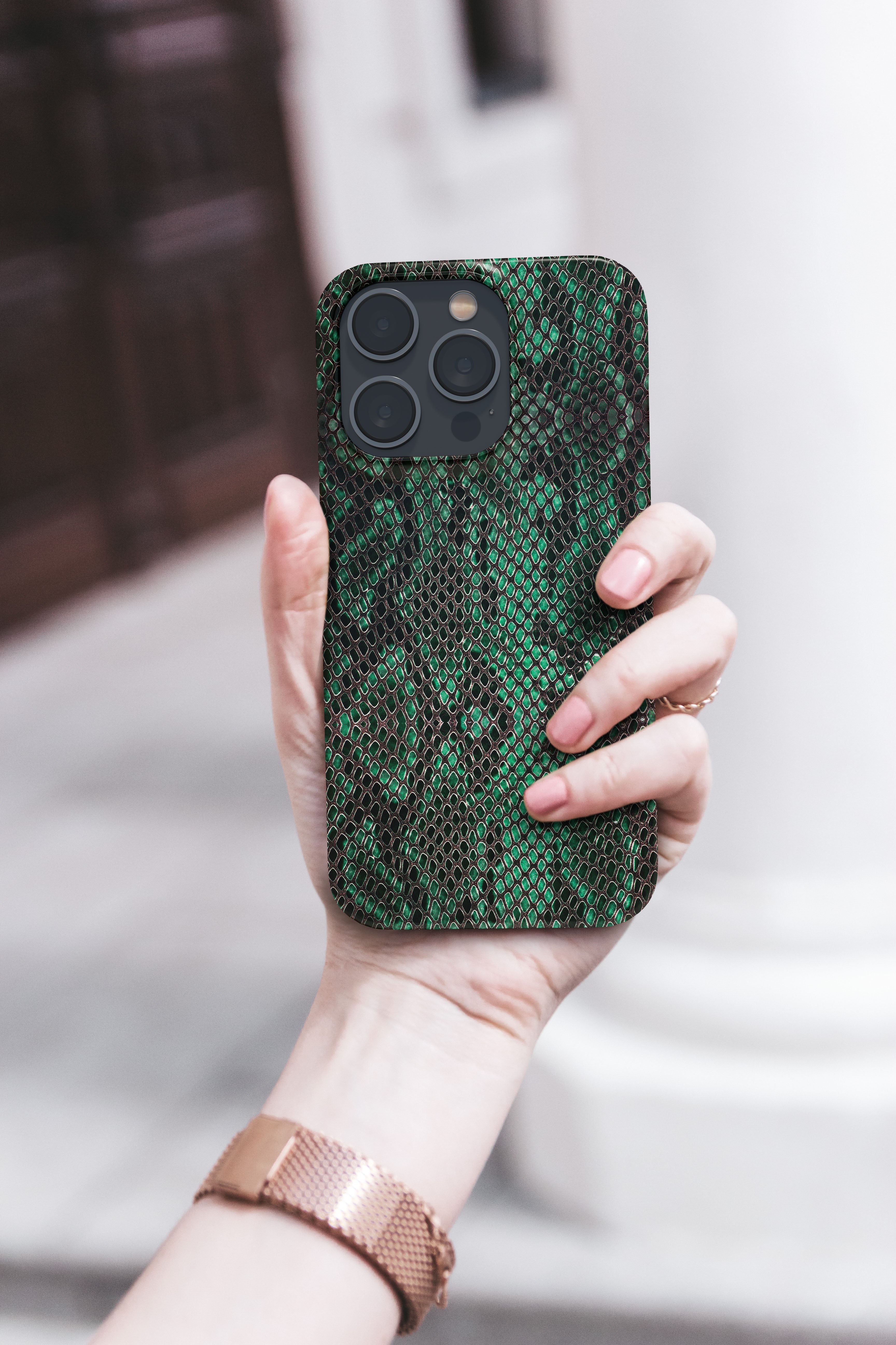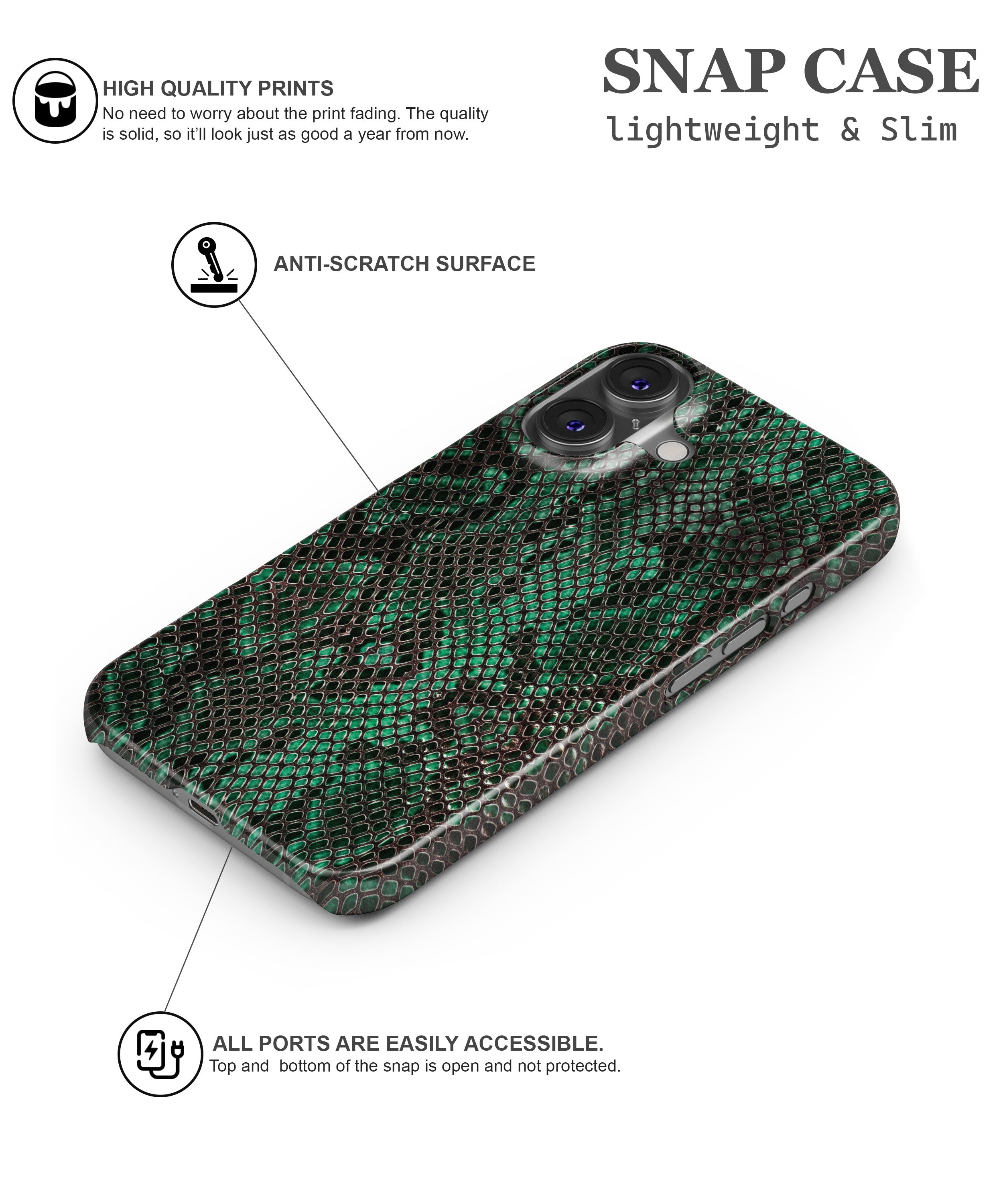 The Emerald Scale case is inspired by high-fashion textures and confident individuality. Its rich green snake-scale pattern delivers a powerful, premium look that feels bold without trying too hard. Designed to elevate your everyday style, this case turns your phone into a fashion accessory while offering dependable protection and a comfortable grip for daily use.