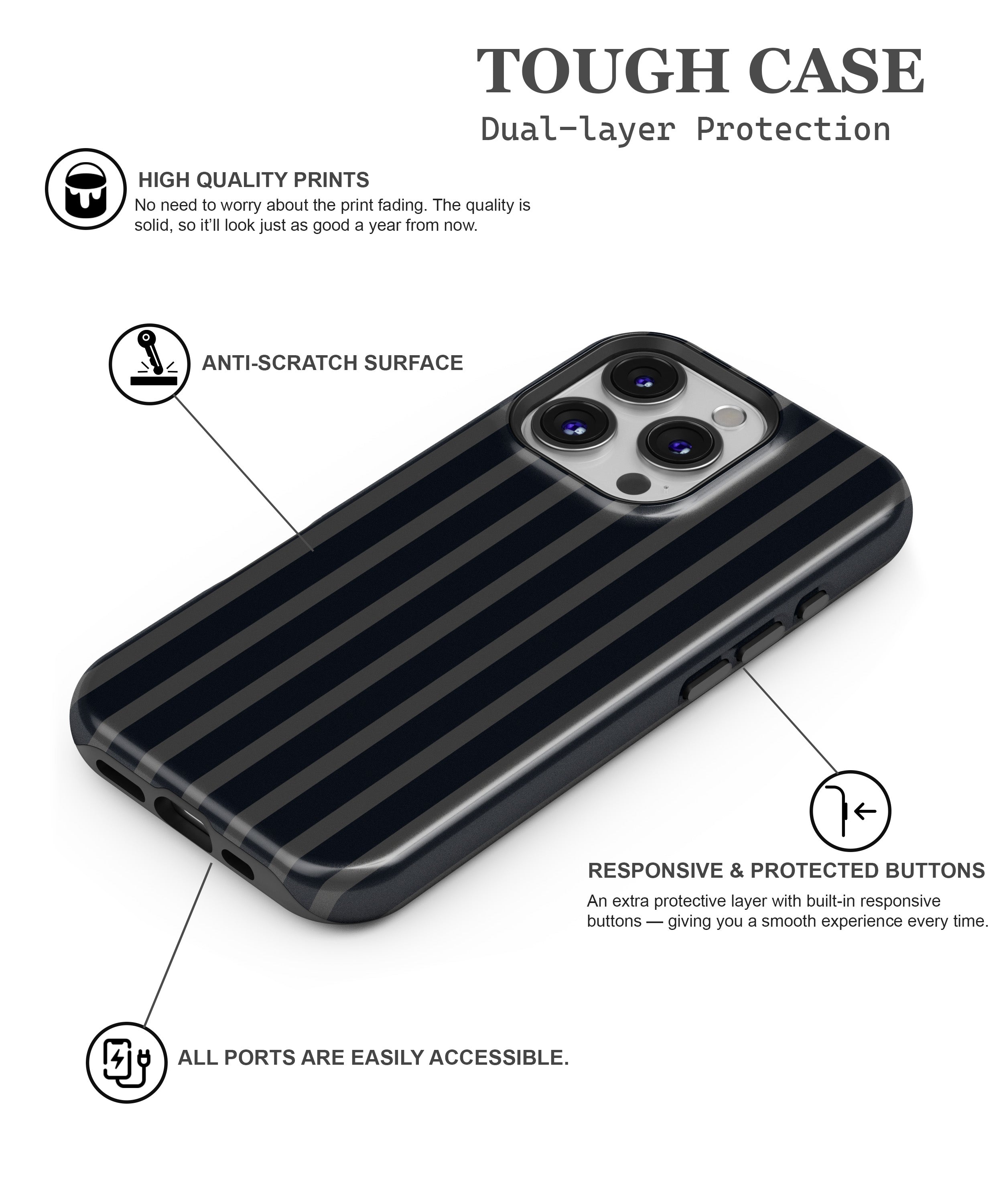 Midnight Stripe Protective Phone Case – Minimal, Sleek & Impact-Ready