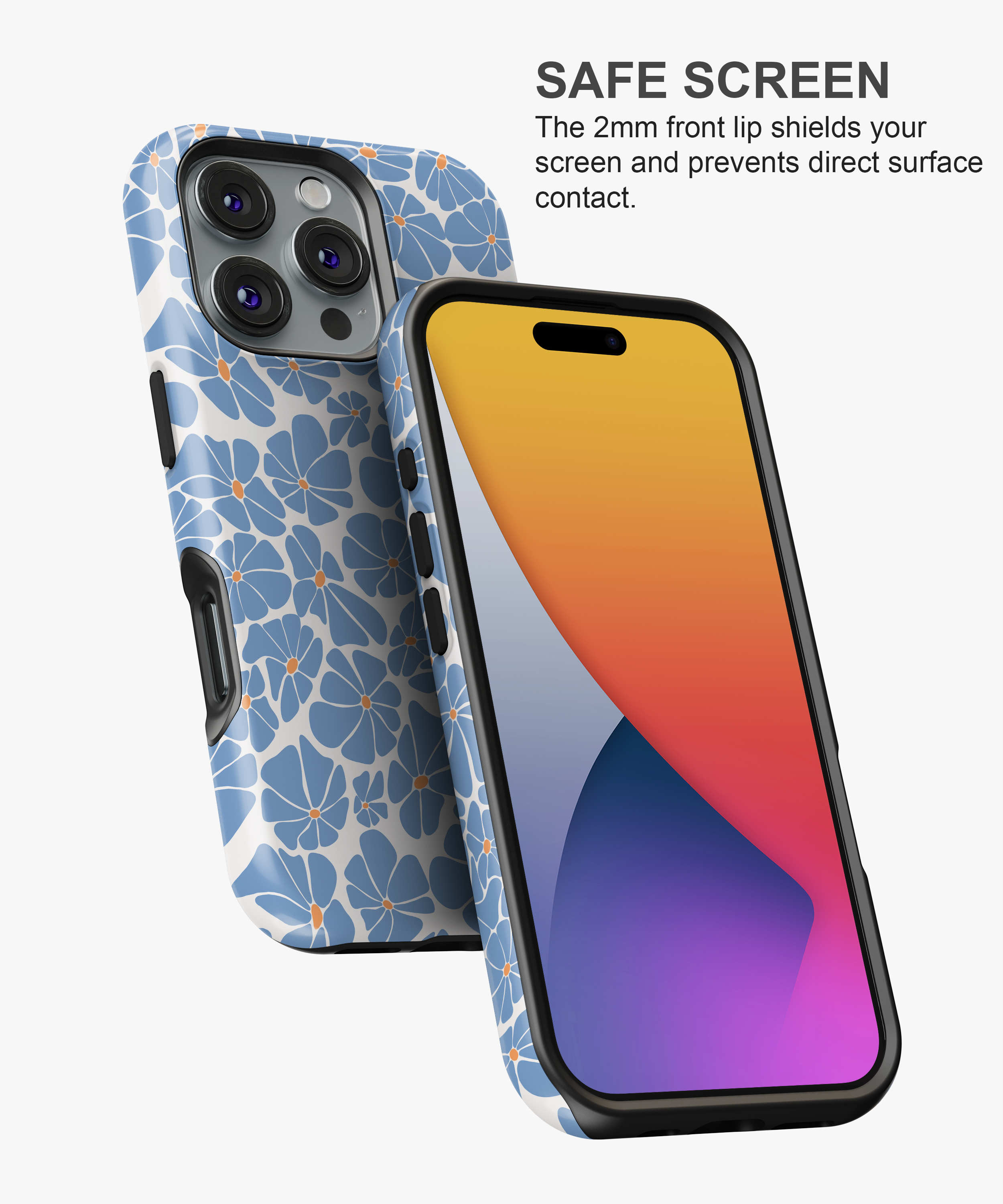 ⟶ All our cases come with elevated bezels around the camera, ensuring it never touches surfaces when laid flat on its back.