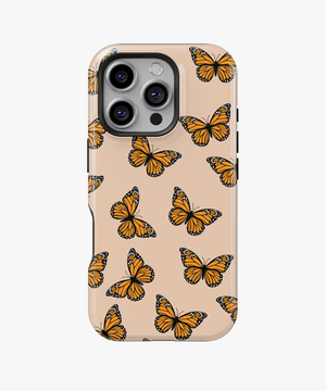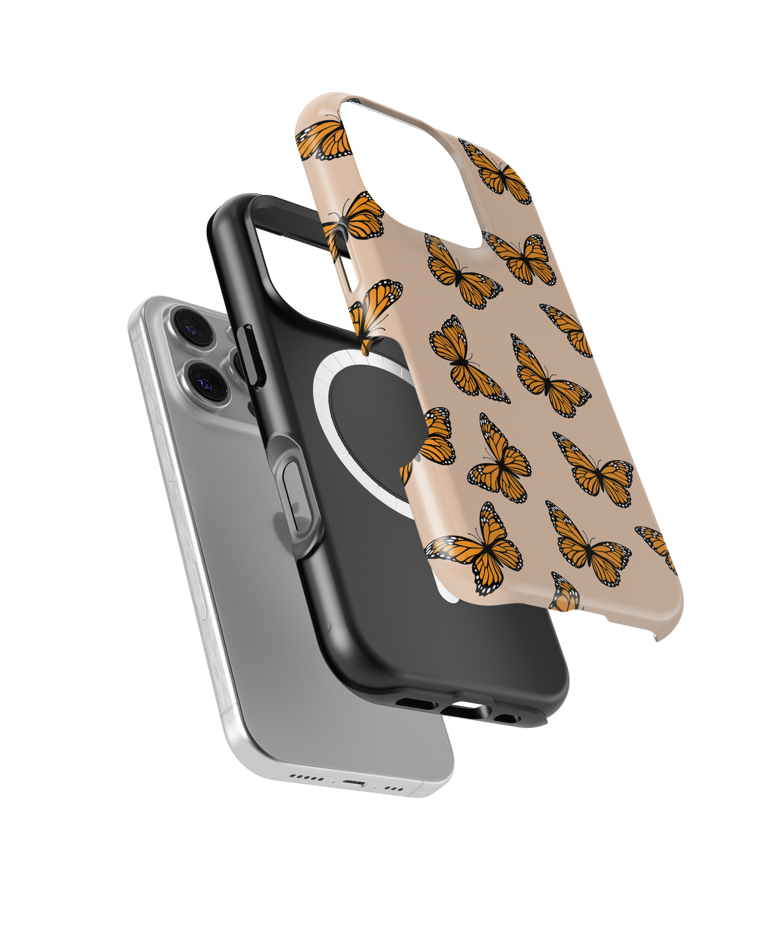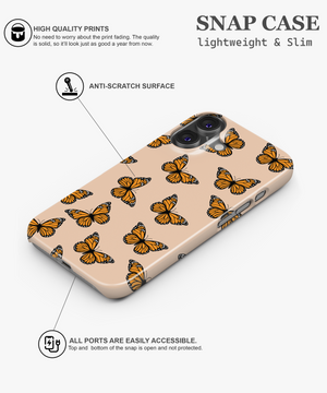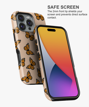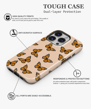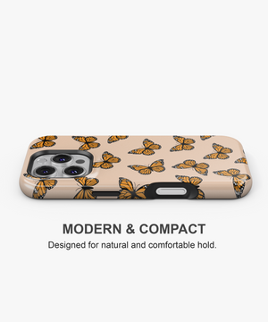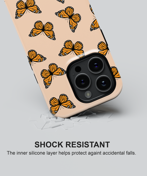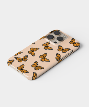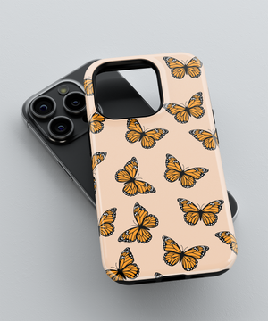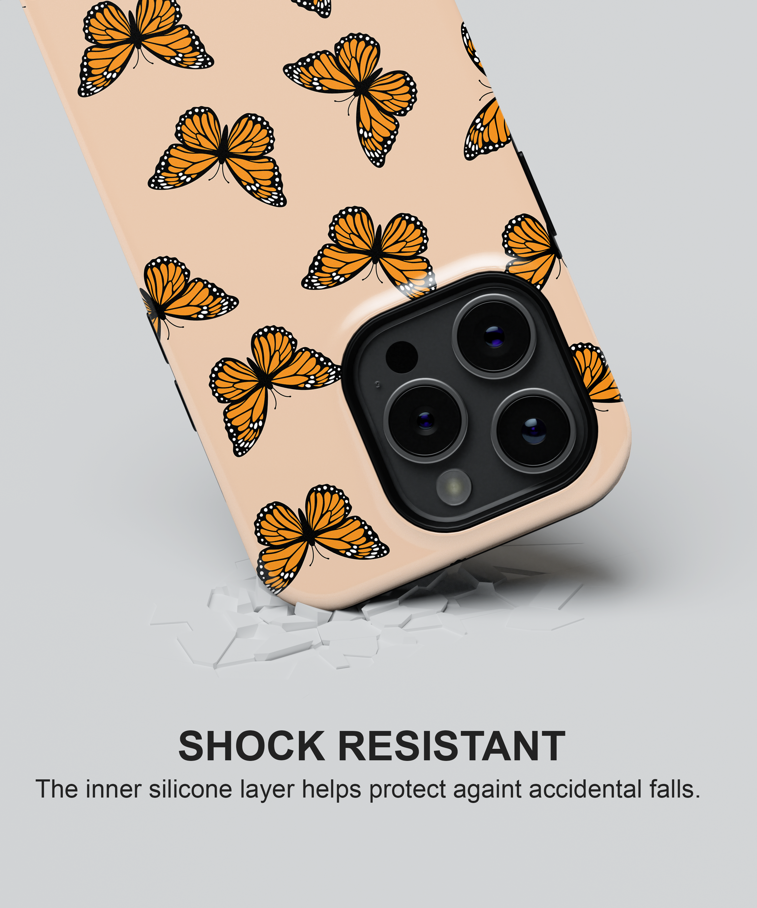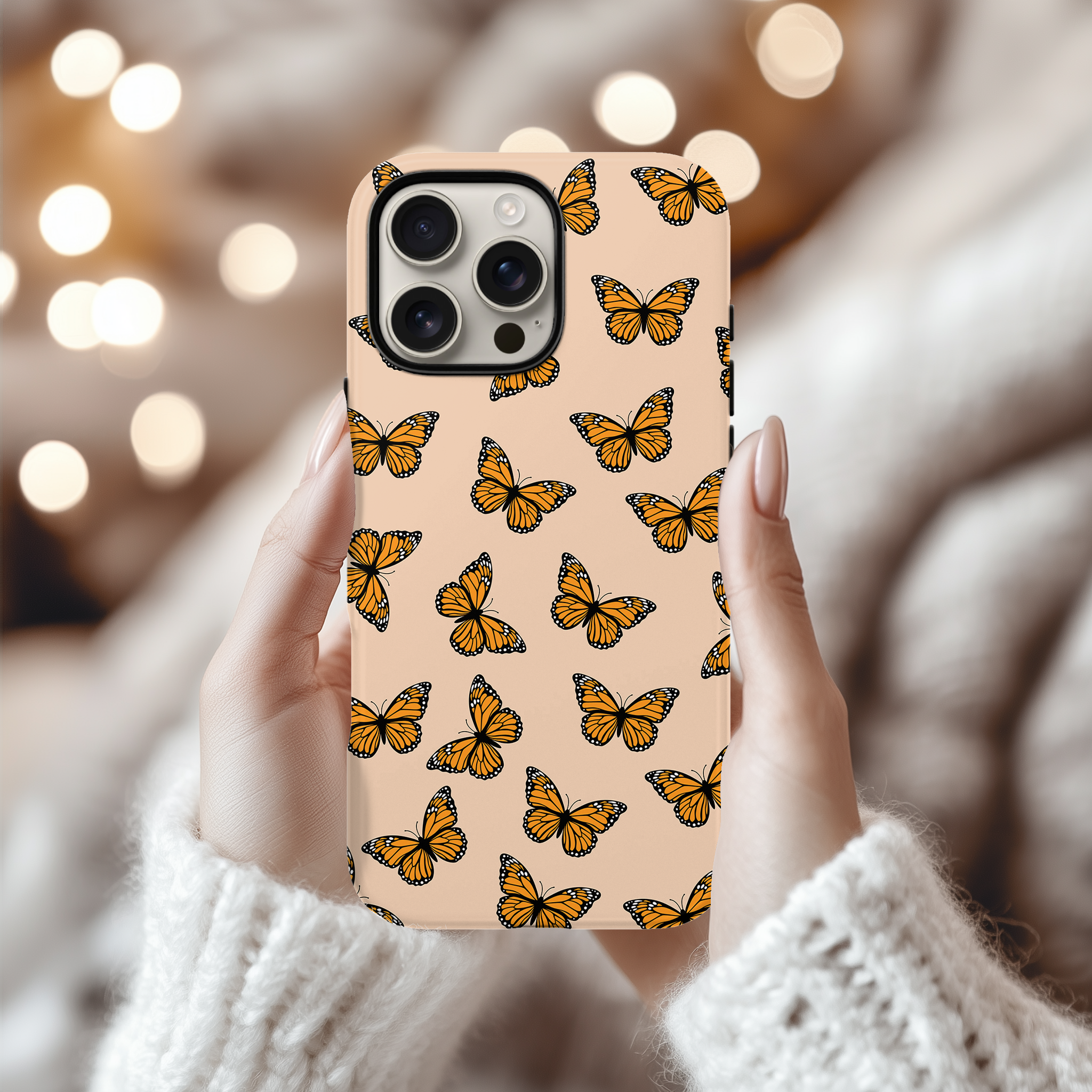 This cute monarch butterfly phone case has bright orange butterflies on a soft peach background. It is perfect for girls and nature lovers who want an aesthetic, stylish, and protective phone cover for daily use. Gift ideas for her.