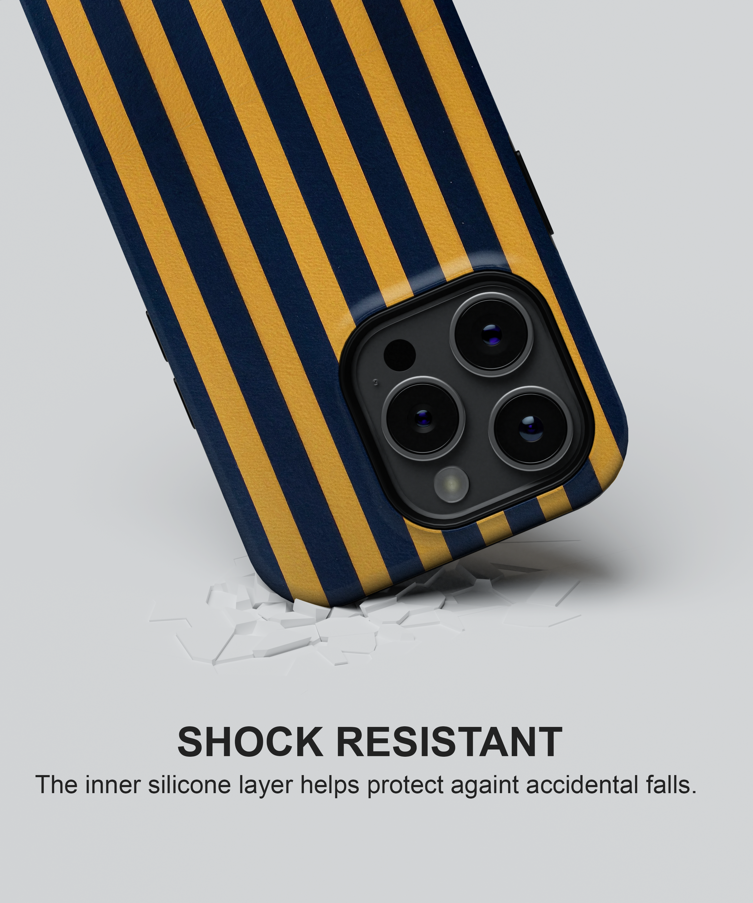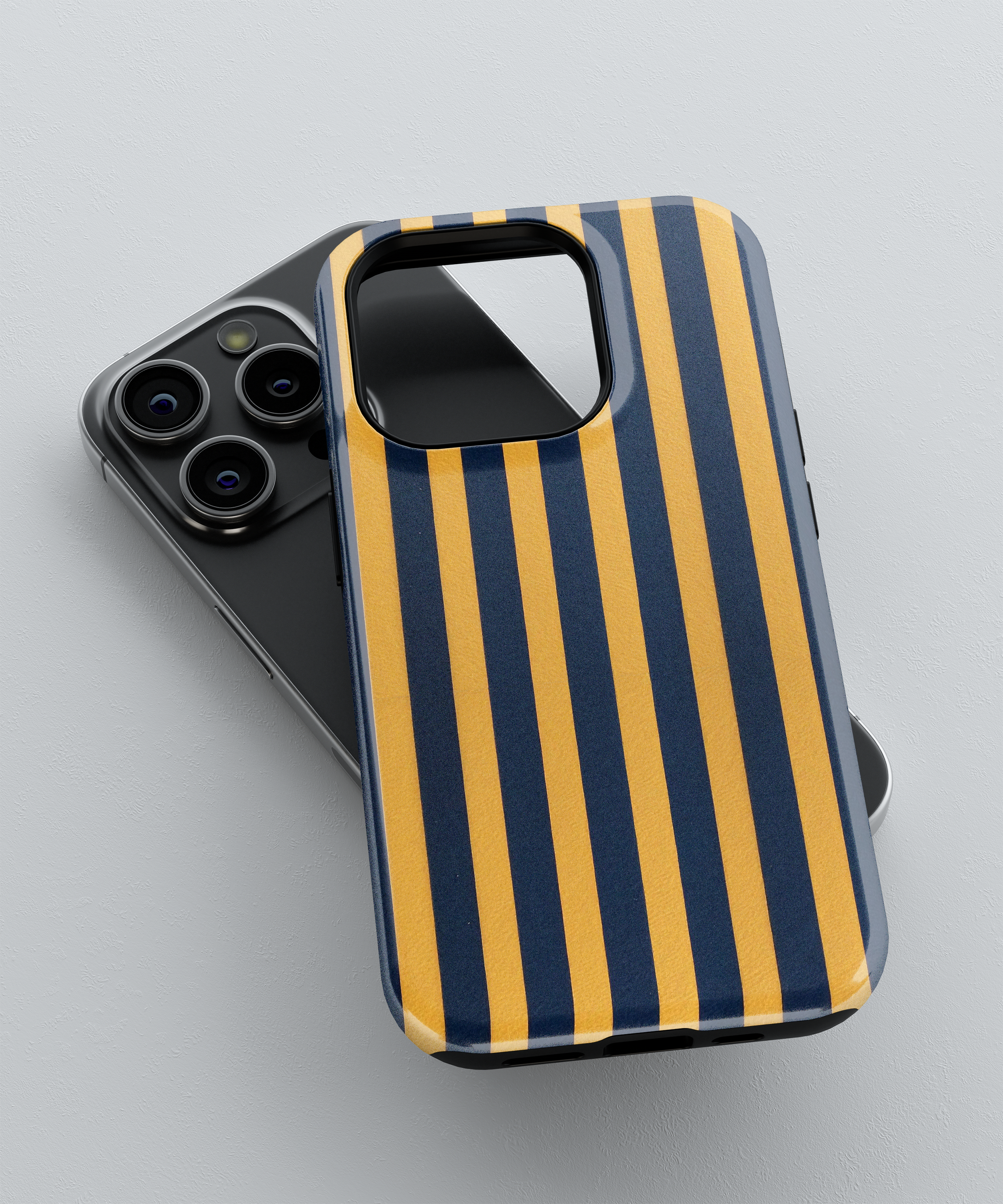 This navy gold stripe phone case from FireBornGuard captures the quiet sophistication of yacht club stripes, blending deep navy with warm gold like your favorite crisp blazer and loafers. It turns your phone into an effortless extension of refined style, perfect for moments when you want understated luxury that feels both powerful and perfectly polished.