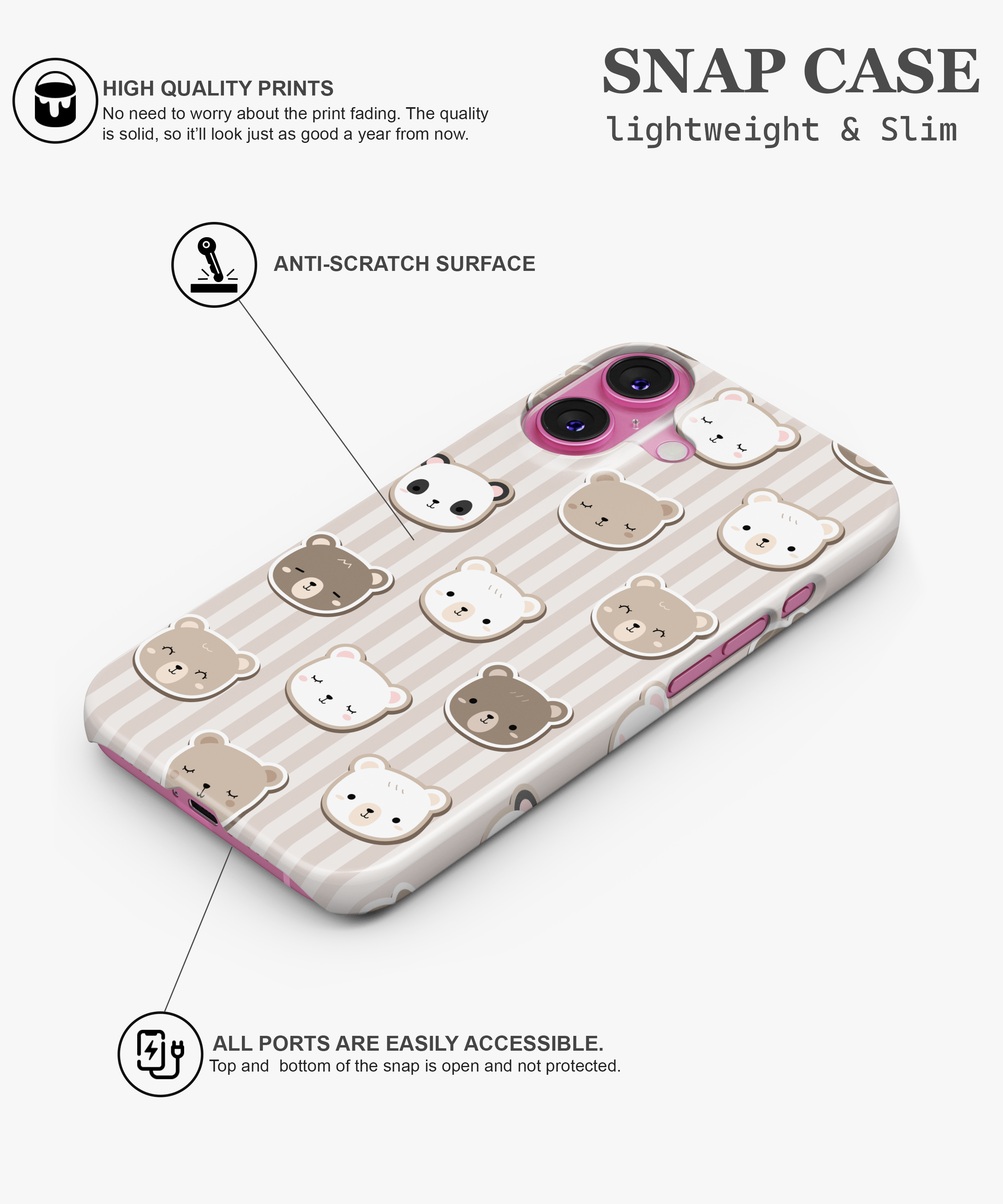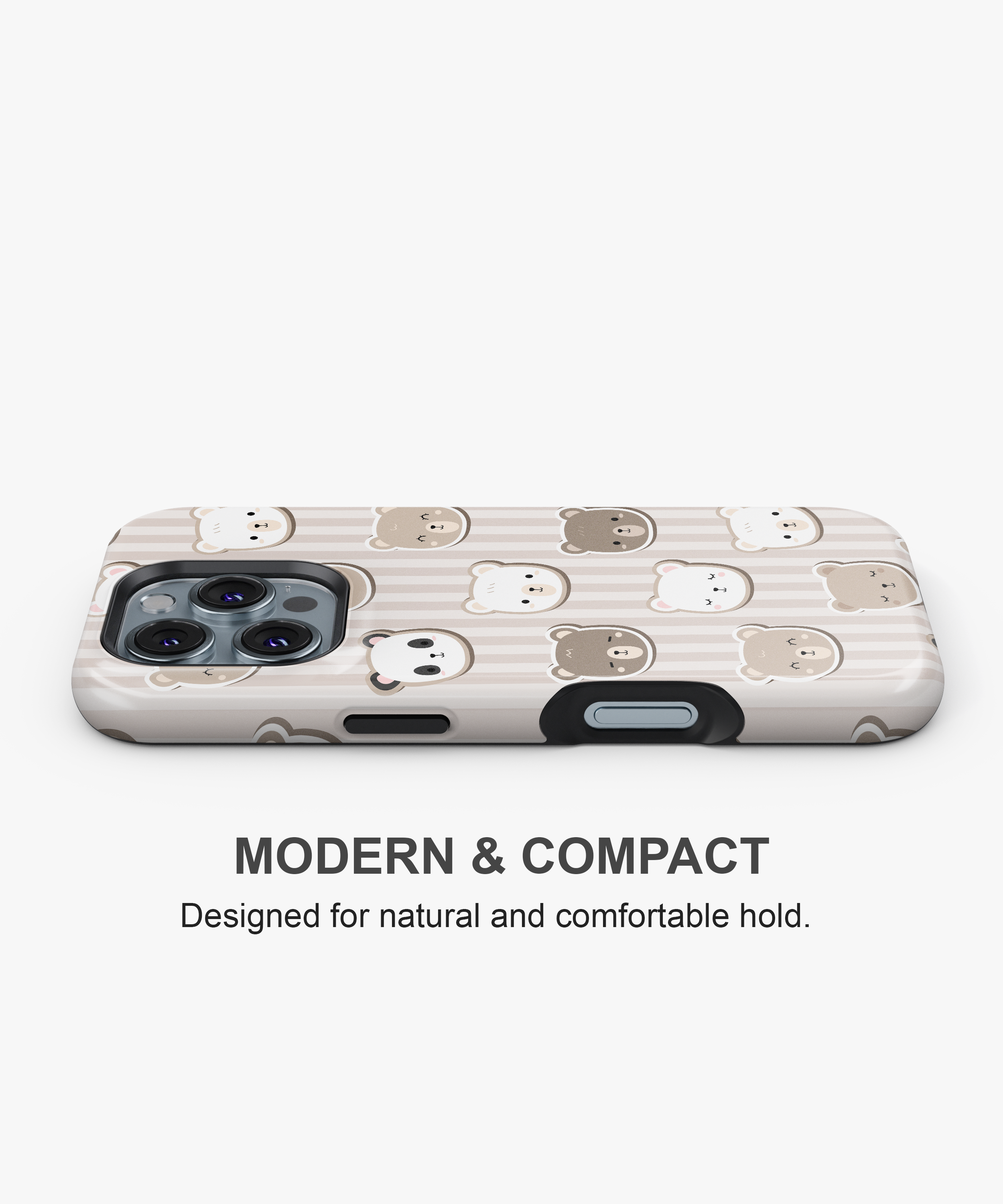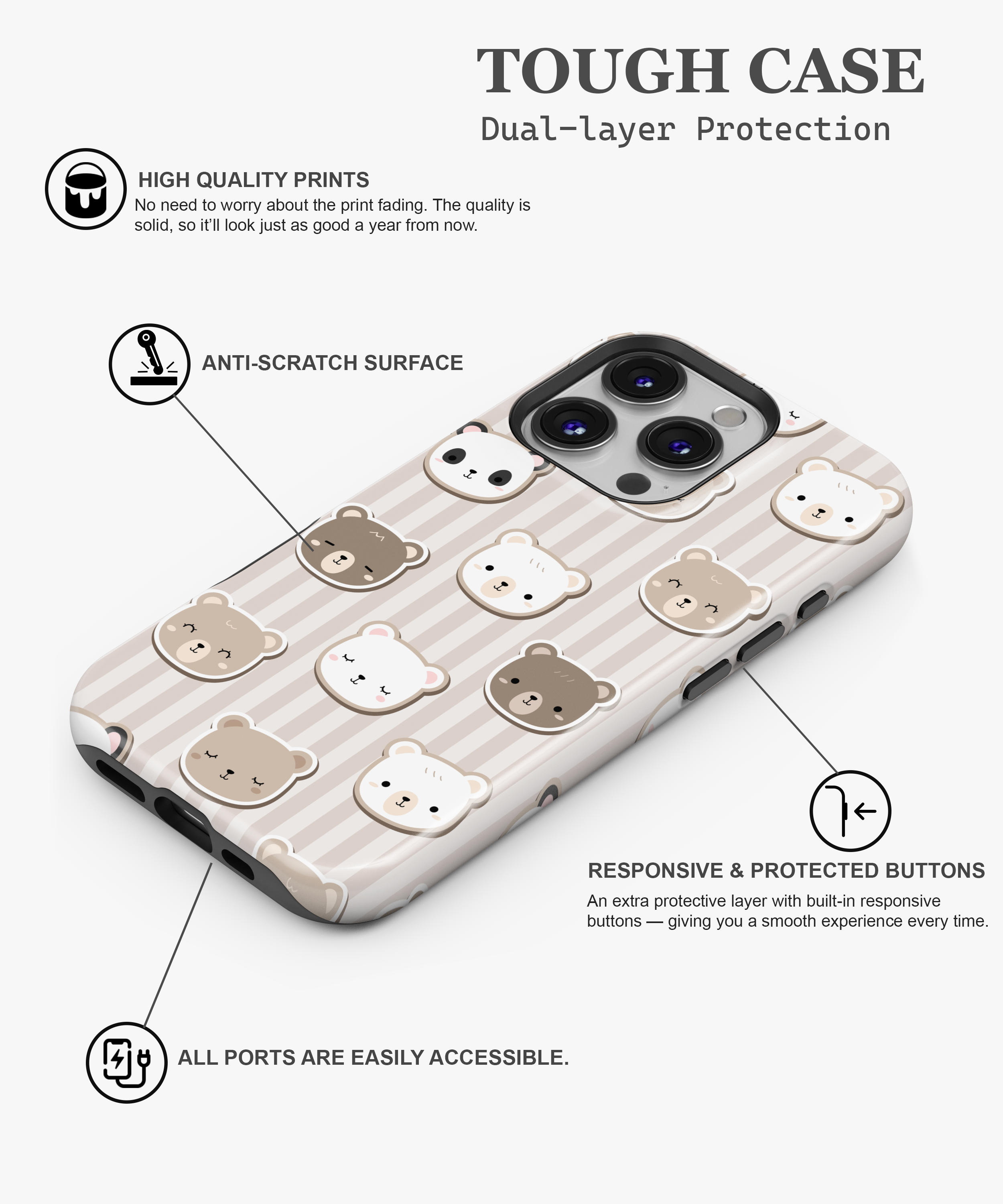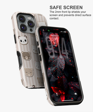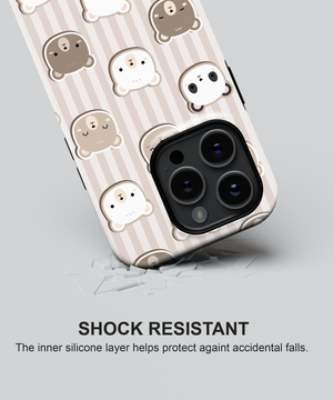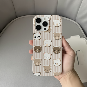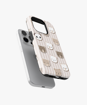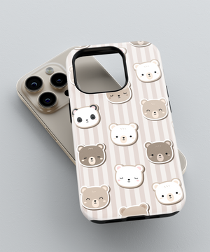 Neutral Bear Faces Phone Case – Cute Bears on Beige Stripes