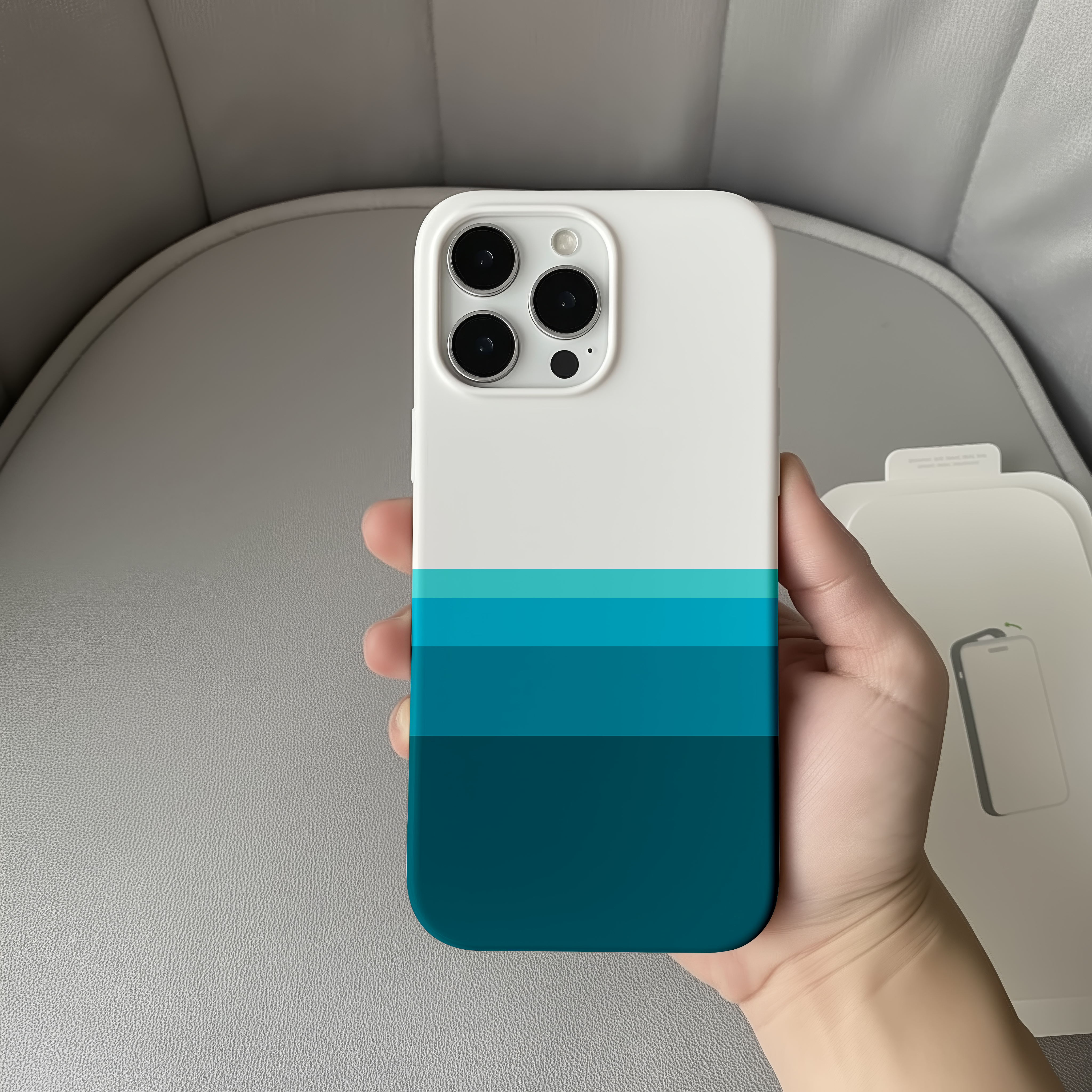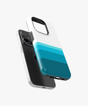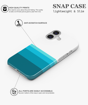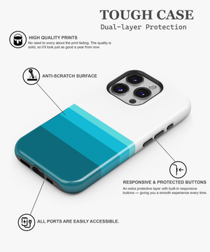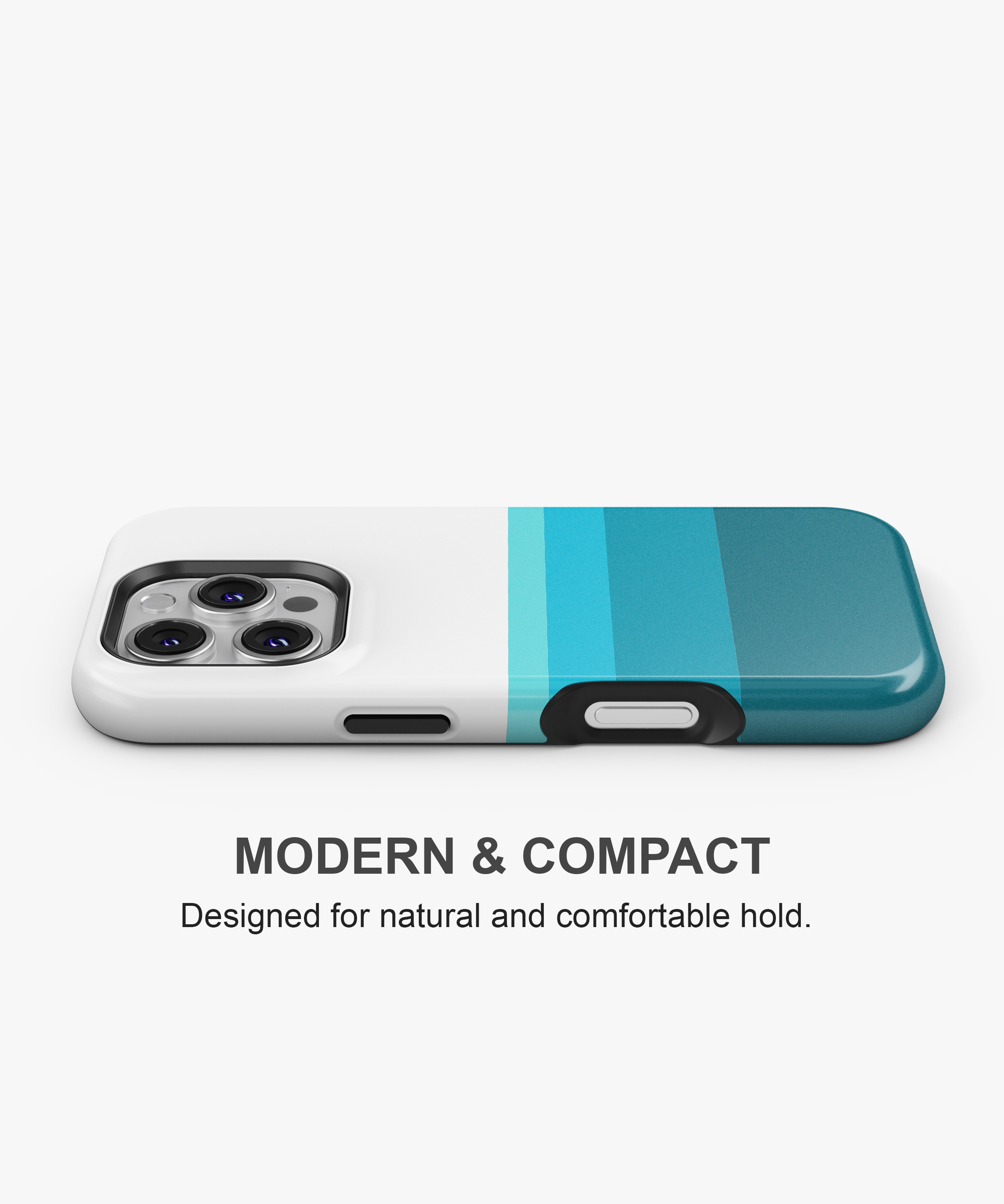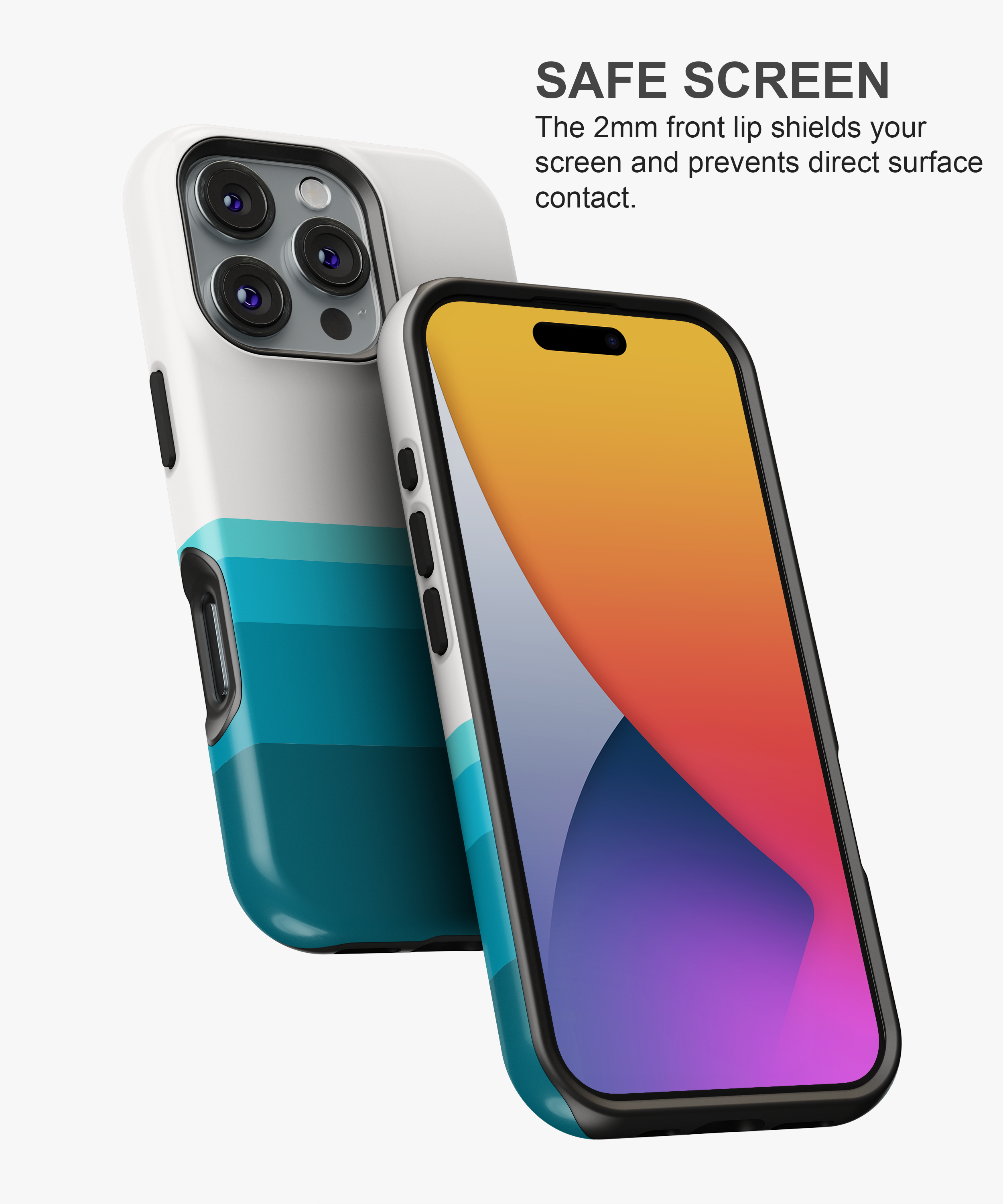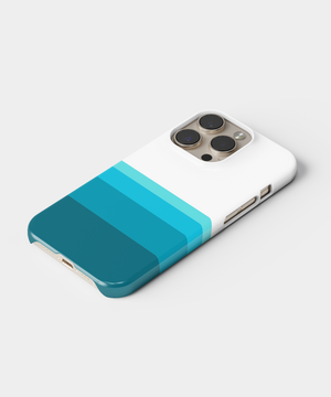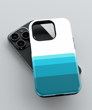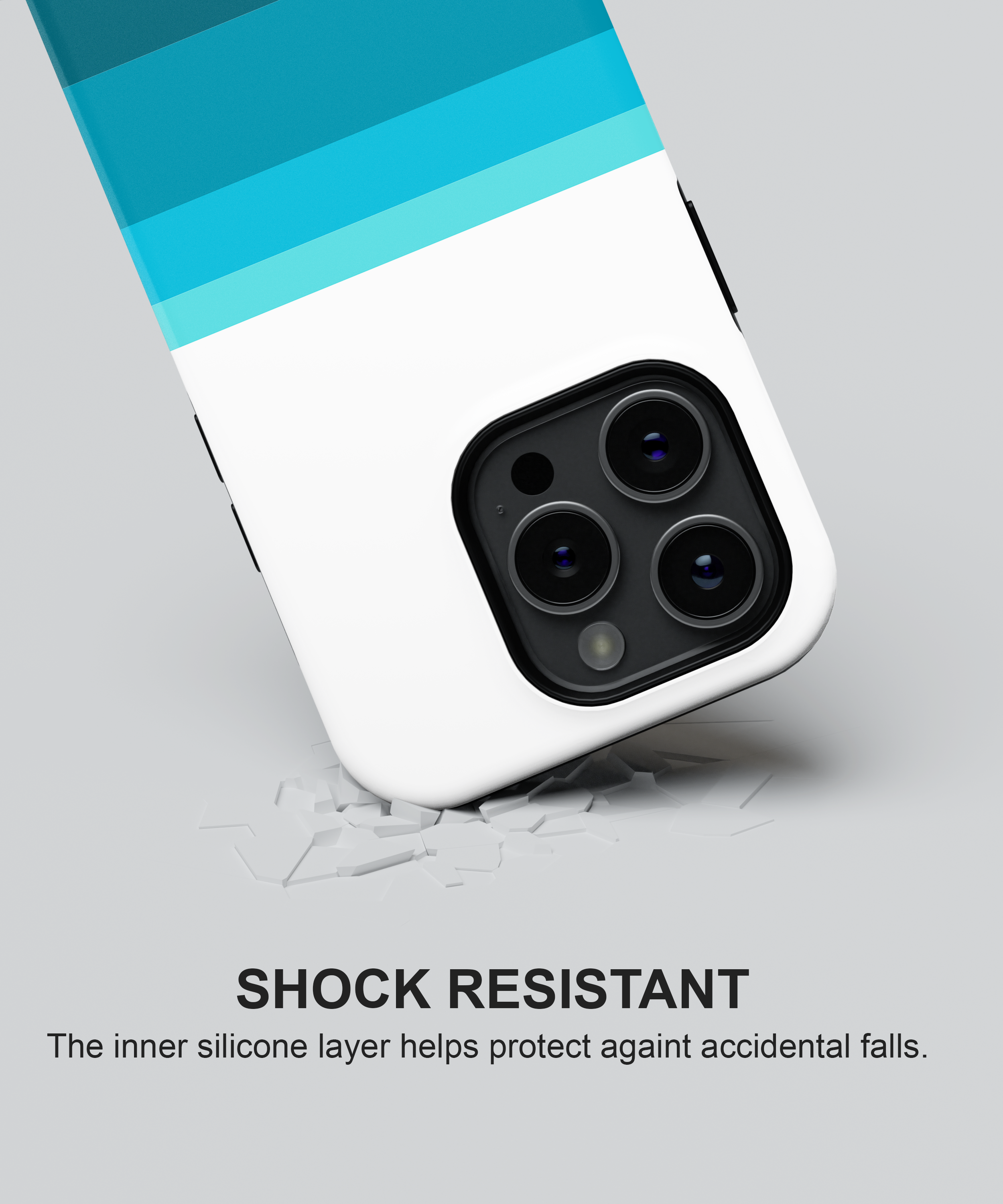 Clean white phone case with bold teal and aqua gradient stripes, inspired by calm ocean tones for a fresh, minimal look. Designed to protect your device from daily drops and scratches while staying slim and lightweight, this striped case fits a wide range of iPhone, Google and Samsung models.