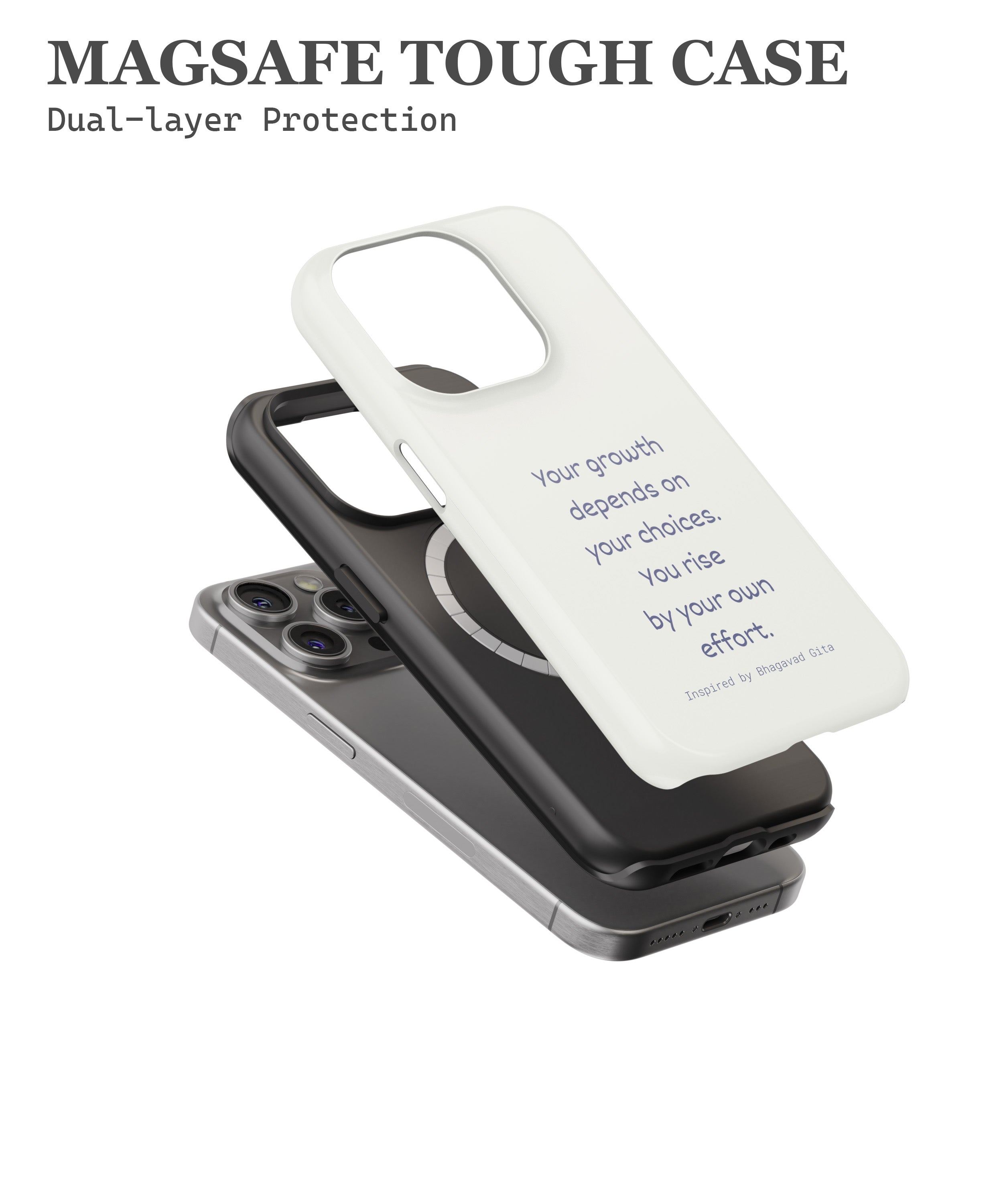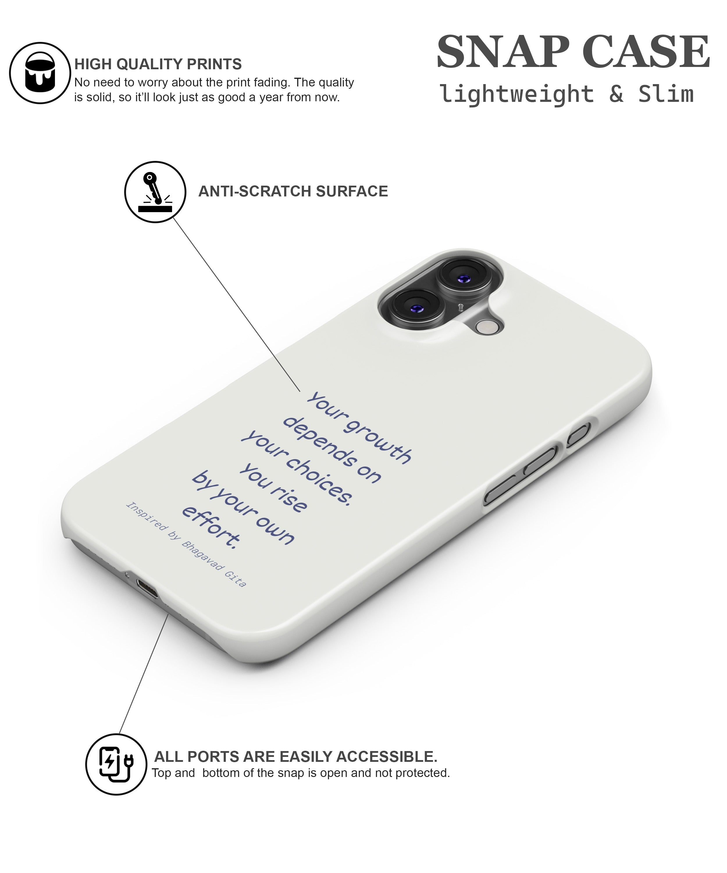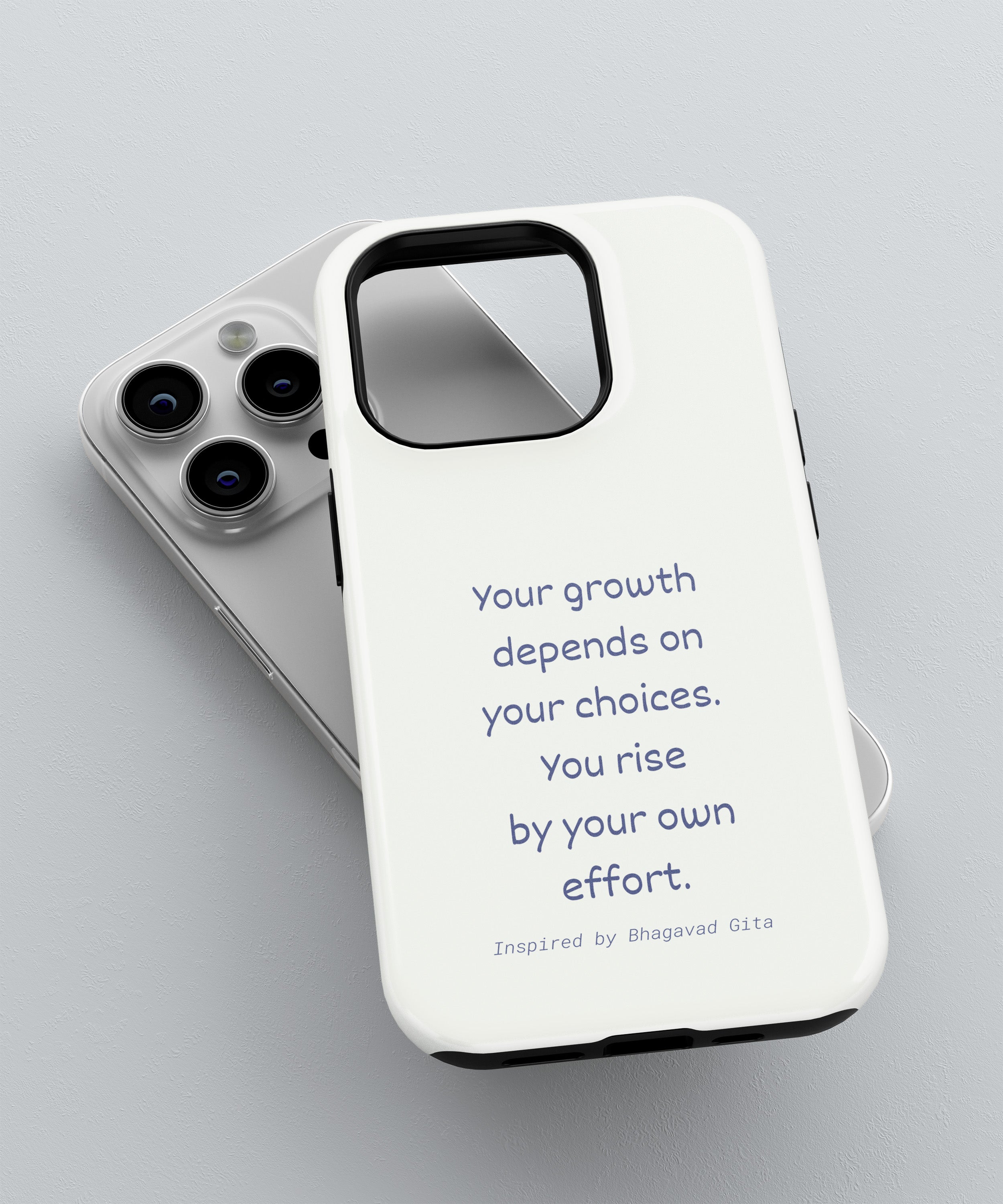 A quiet yet powerful reminder that growth begins from within, the Own Your Growth phone case reflects the timeless wisdom of the Bhagavad Gita in a modern, minimalist form. Featuring the message “Your growth depends on your choices. You rise by your own effort,” this design inspires self-responsibility, discipline, and inner strength. With soft aesthetics and clean typography, it’s made for those who believe progress is shaped by intention and consistent effort—every single day.