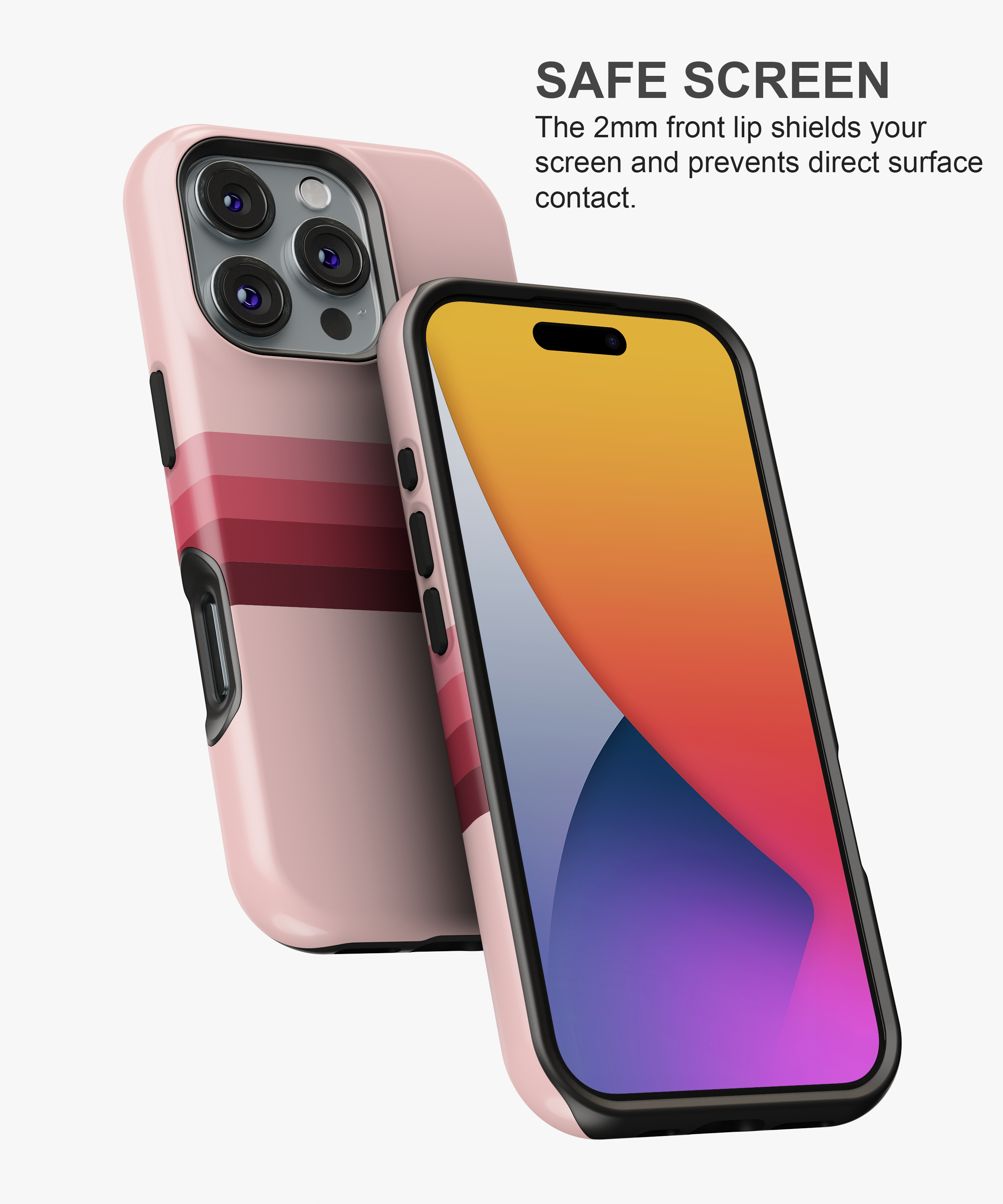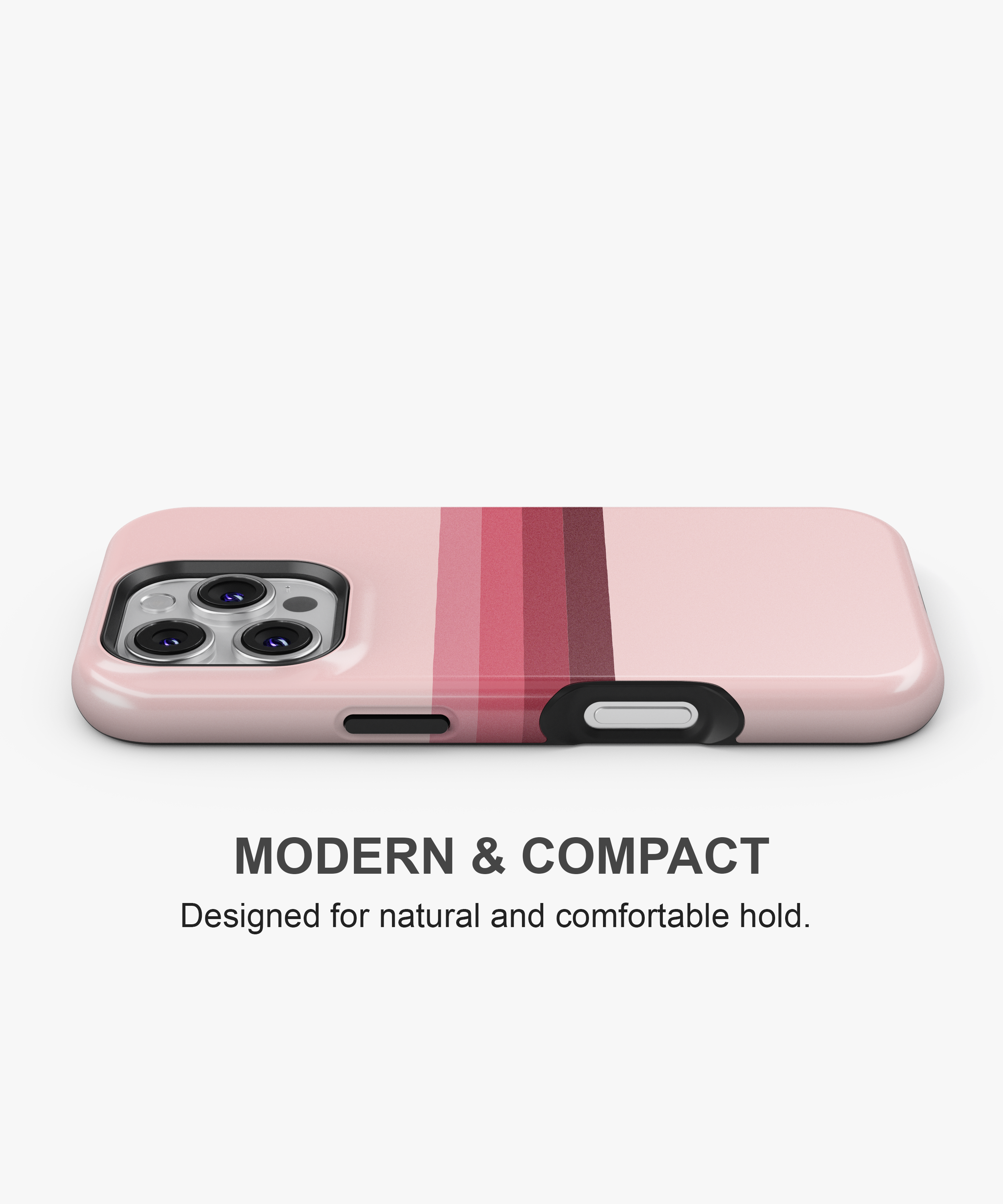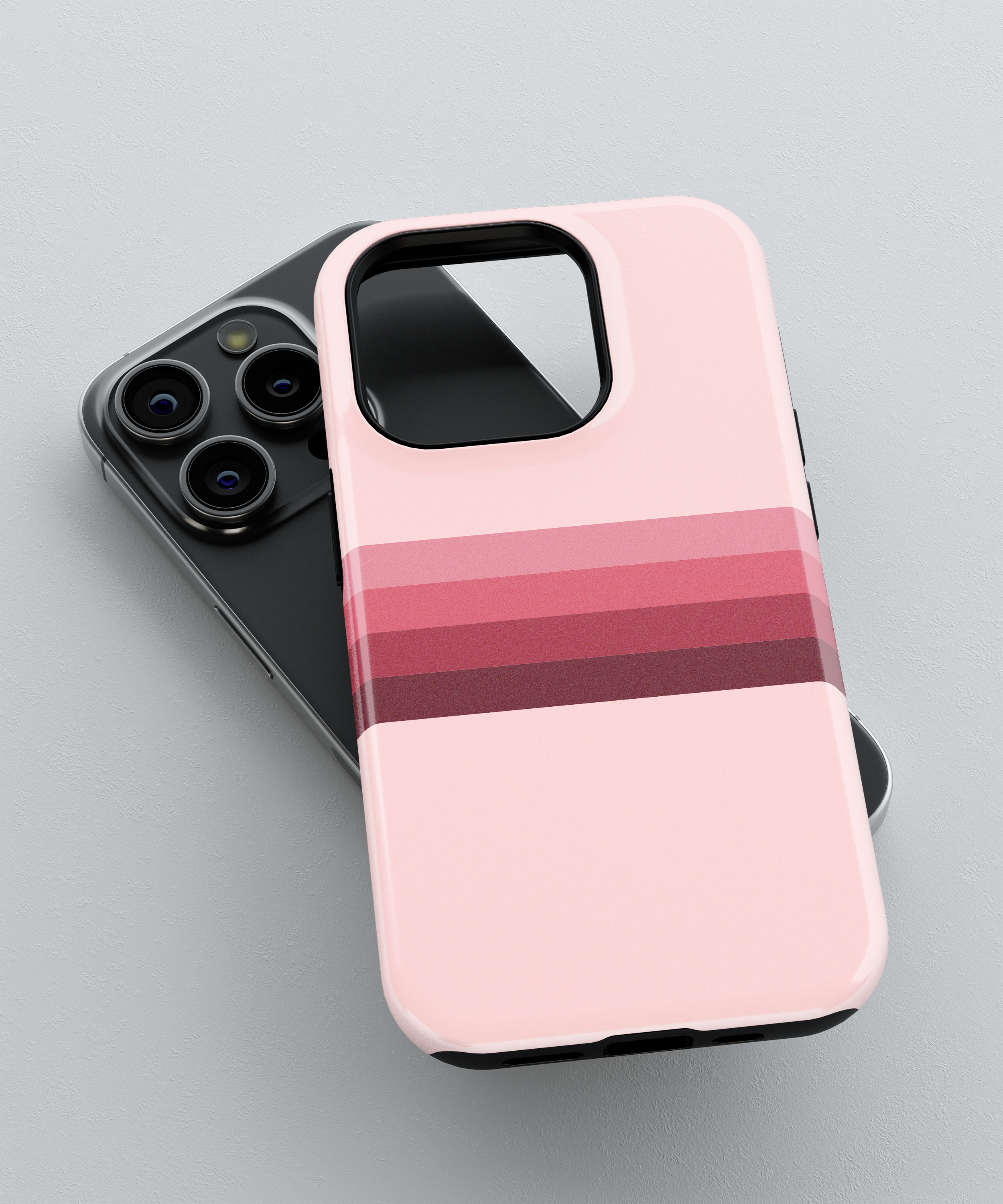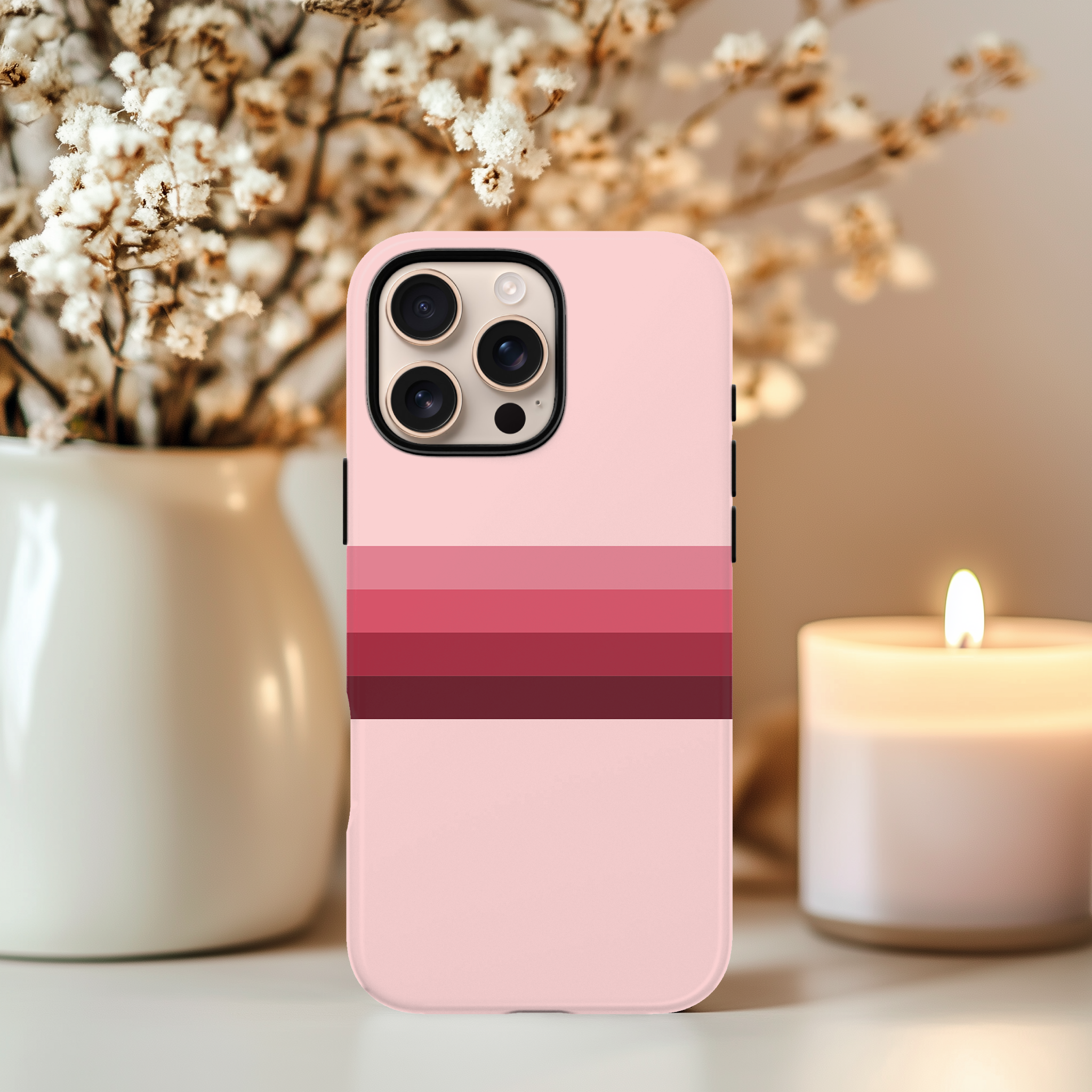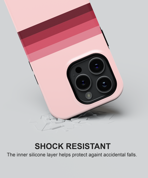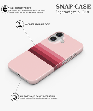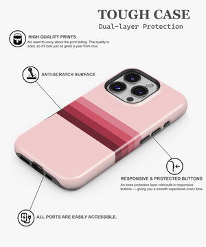Soft pink phone case with horizontal gradient stripes in rose and deep berry tones, perfect for anyone who loves clean, feminine retro style. Available as slim Snap Case, extra‑protective Tough Case and MagSafe Tough Case for a wide range of iPhone, Samsung and Google Pixel models, this cover gives reliable drop and scratch protection while staying light and comfortable to hold.