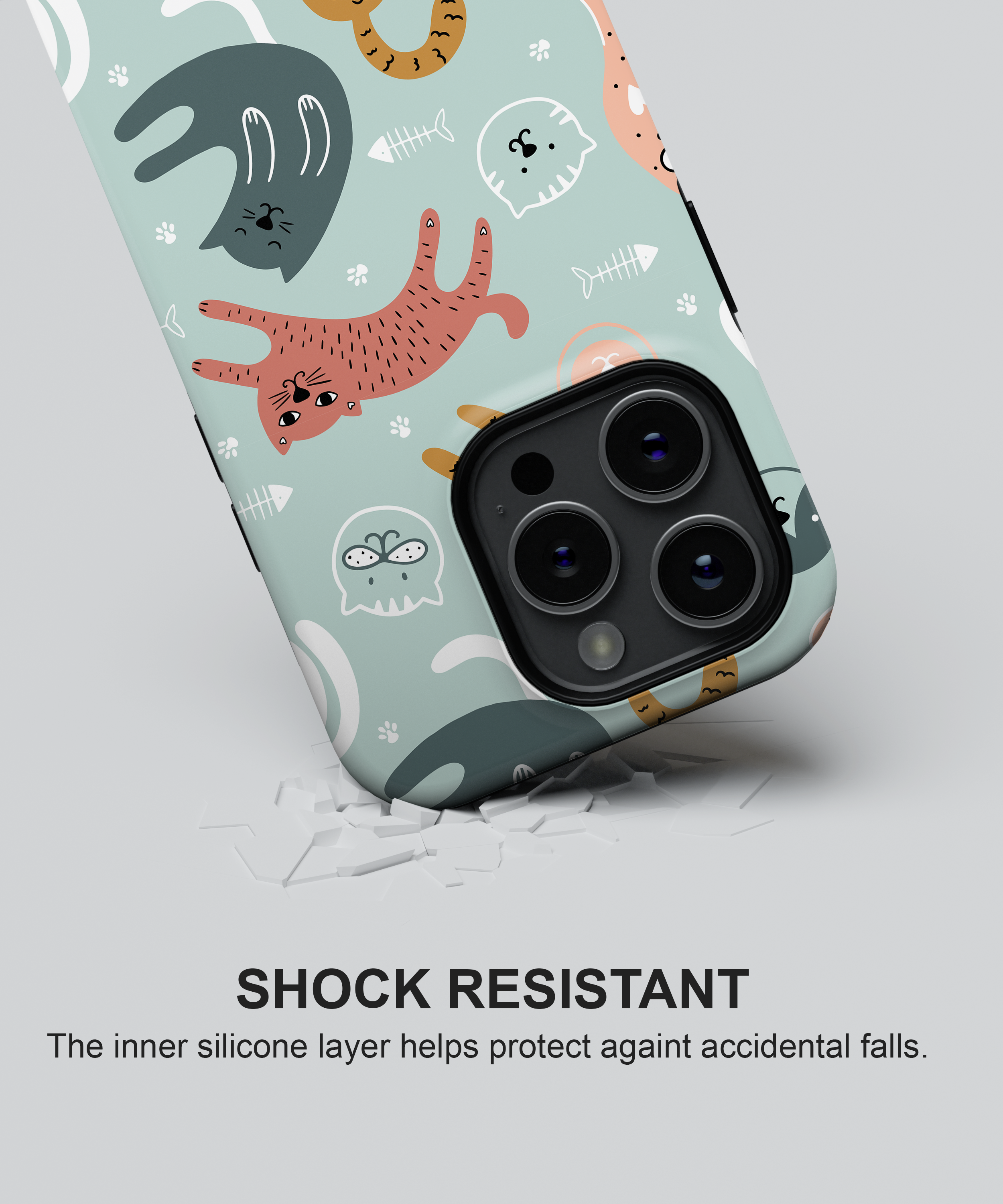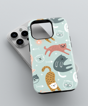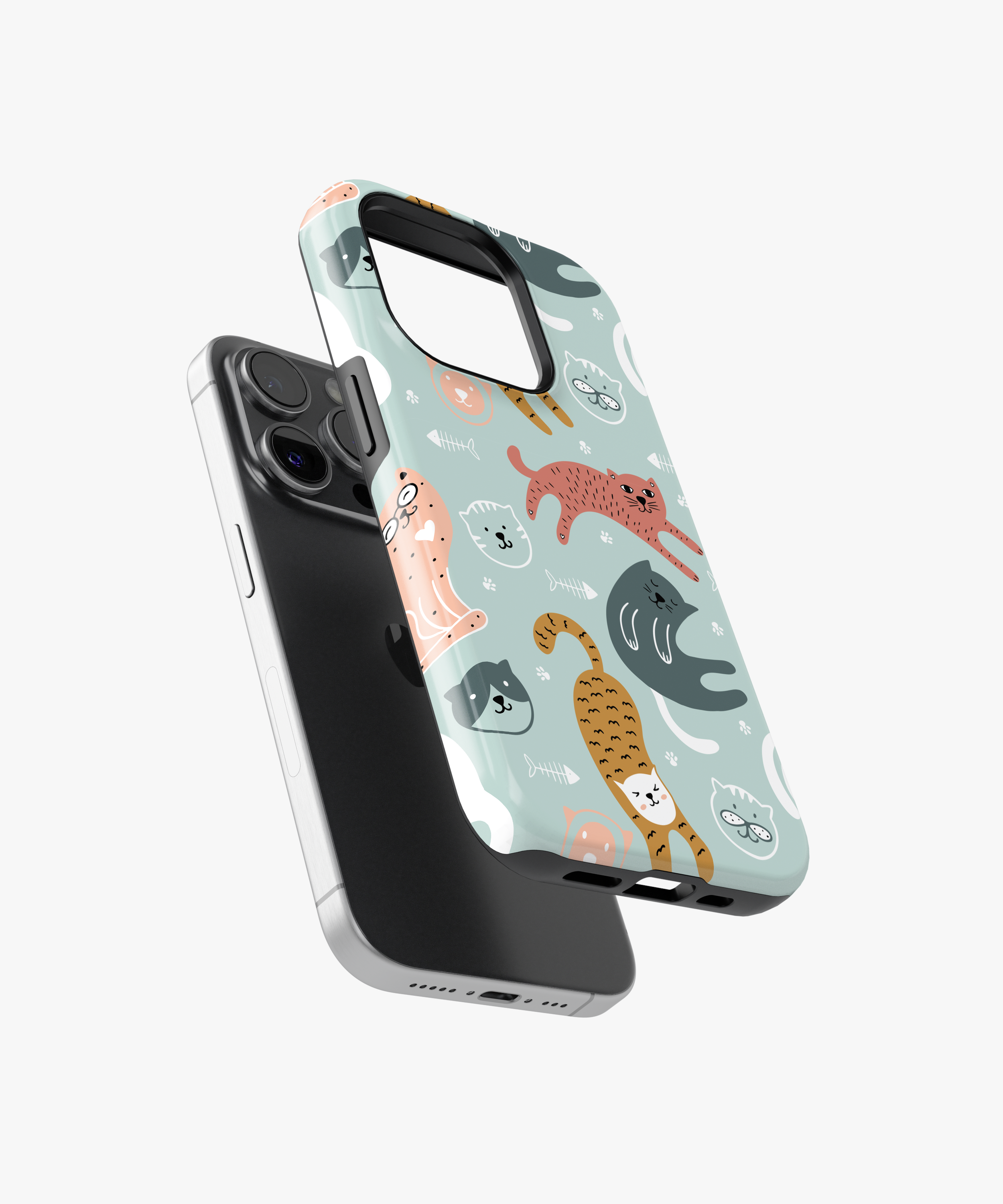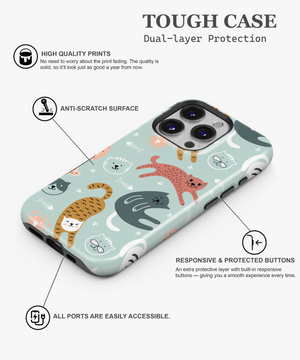 Playful Cats Phone Case – Cute Colorful Kitties on Mint Green