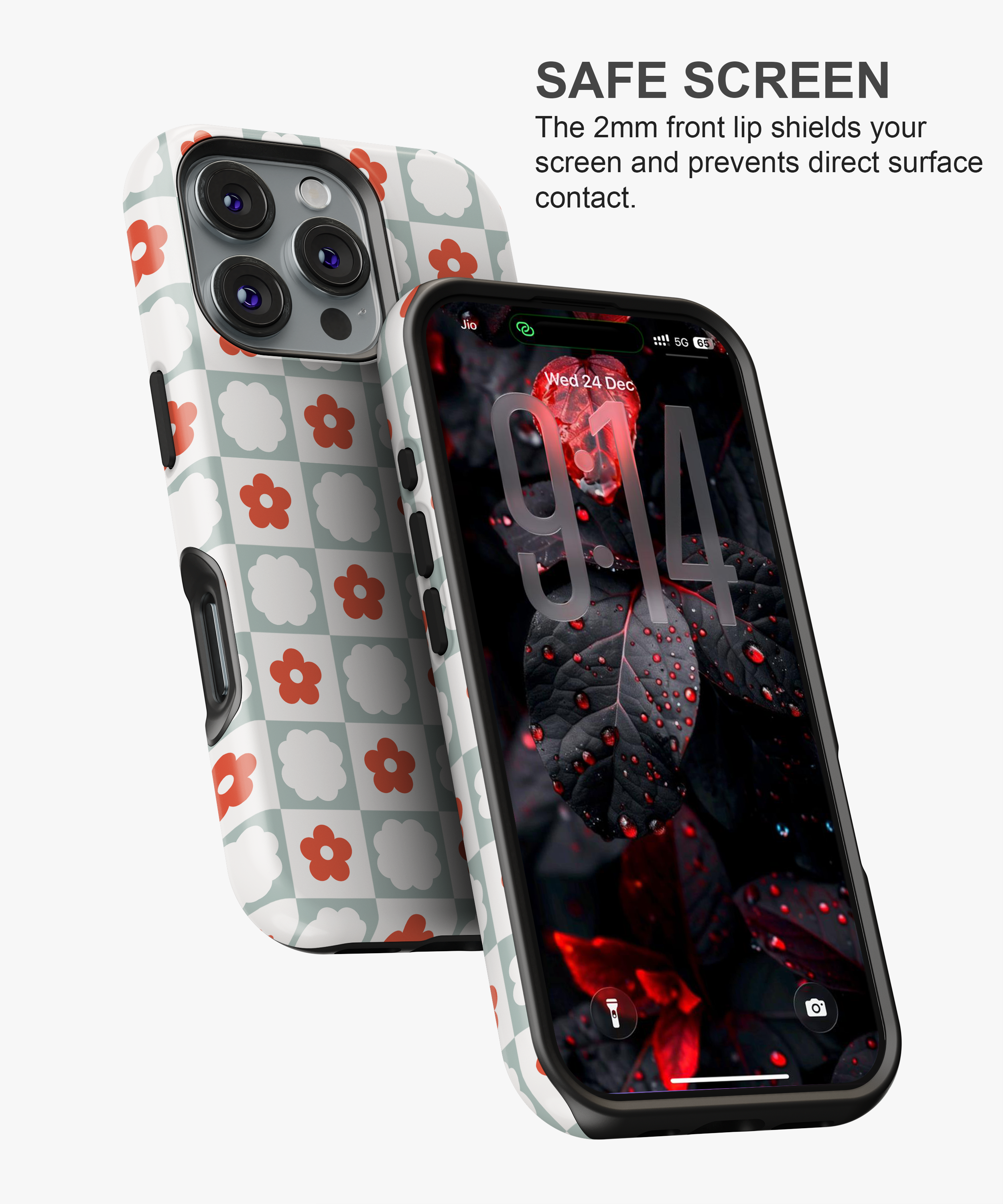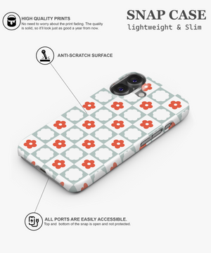 Red Daisy Checkered Phone Case | FireBornGuard Boho Floral Cover