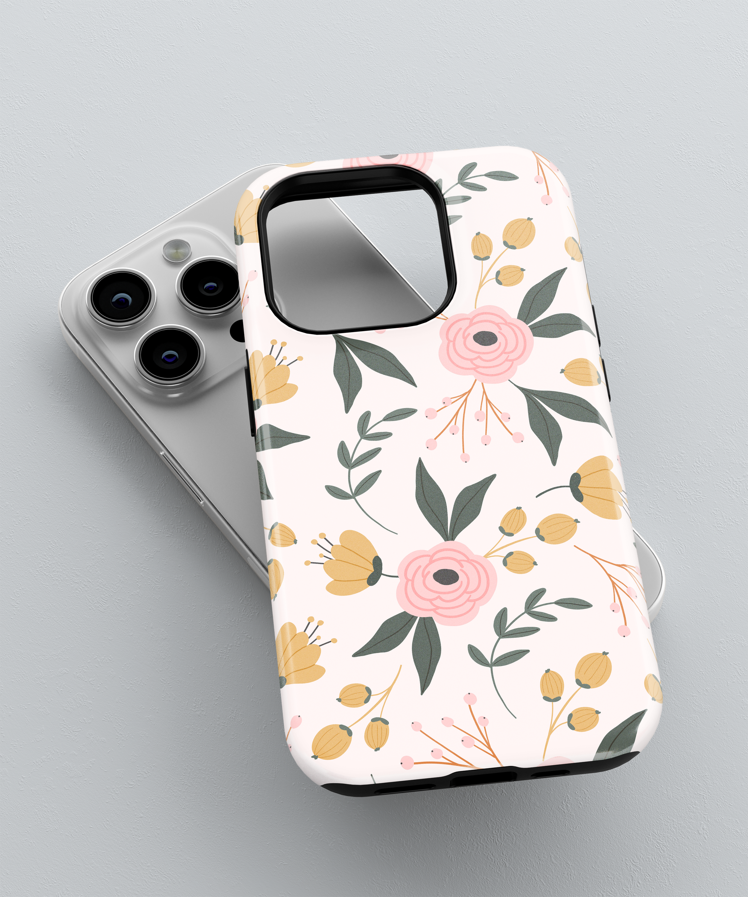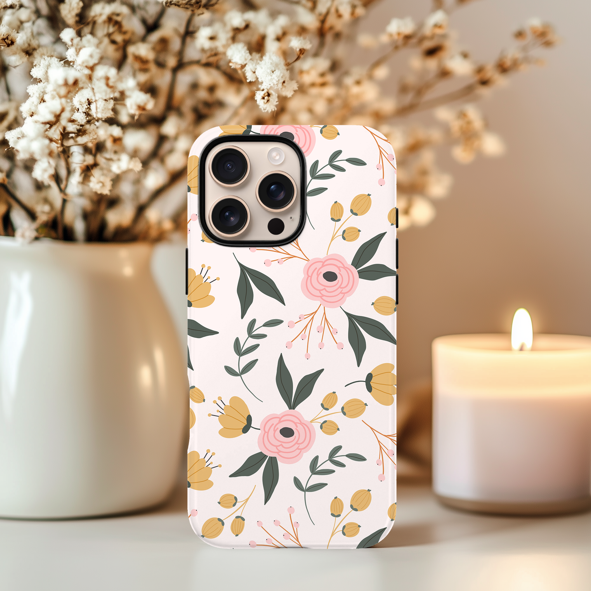 Soft Floral Phone Case – Pink and Yellow Flowers on Cream