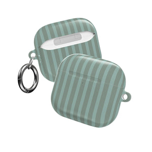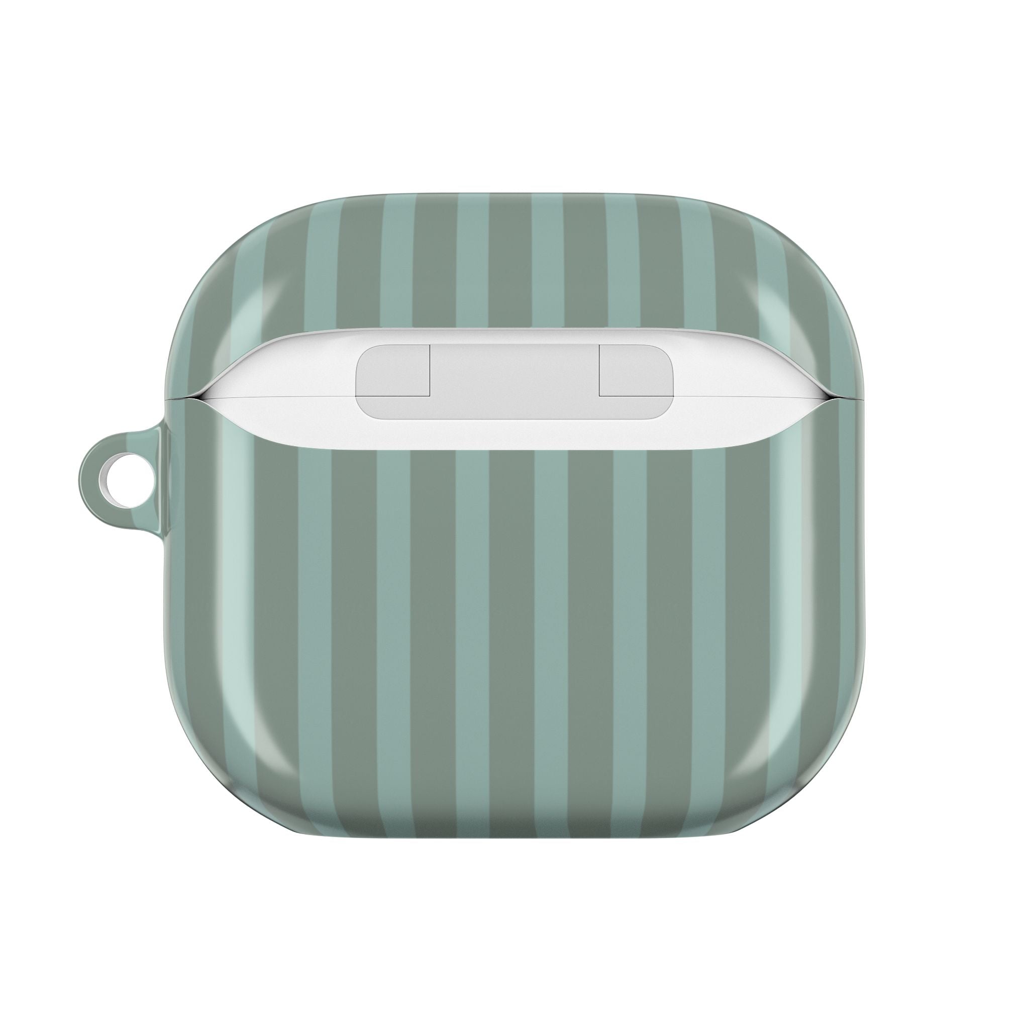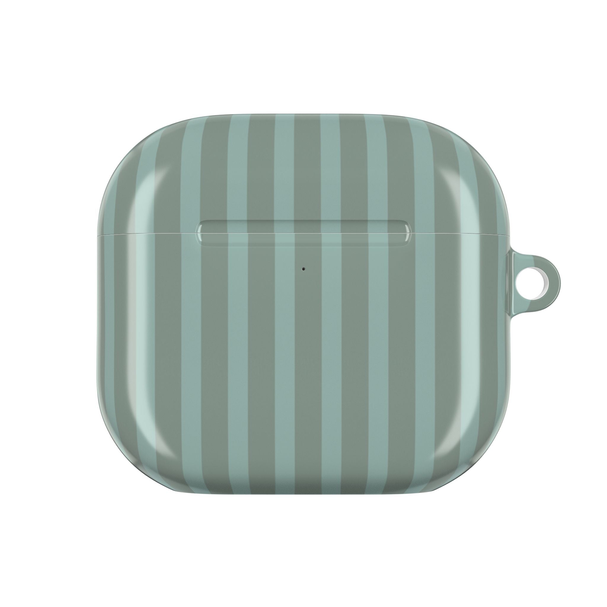 This slim, glossy AirPods case is made for people who like things simple, clean, and reliable. The soft seafoam color with subtle vertical stripes gives it a calm, modern look that fits easily into your daily routine—whether you’re heading to work, traveling, or sitting in a café. The hard polycarbonate shell helps protect your AirPods from scratches and small knocks, while staying light and comfortable to carry. You can charge wirelessly without removing the case, and the open port design keeps charging easy. A small loop with a carabiner lets you clip it to your bag or belt, so your AirPods are always close when you’re on the move.