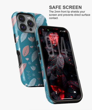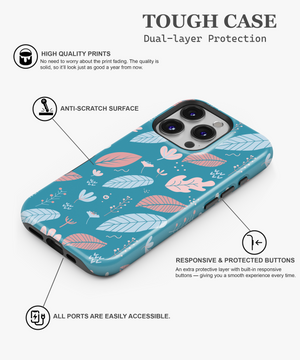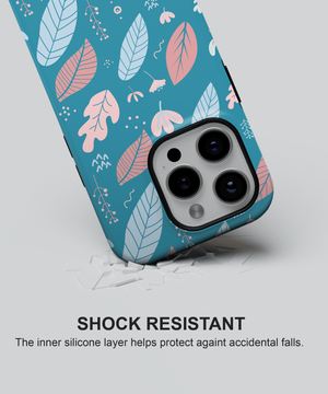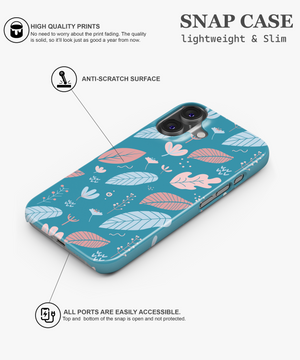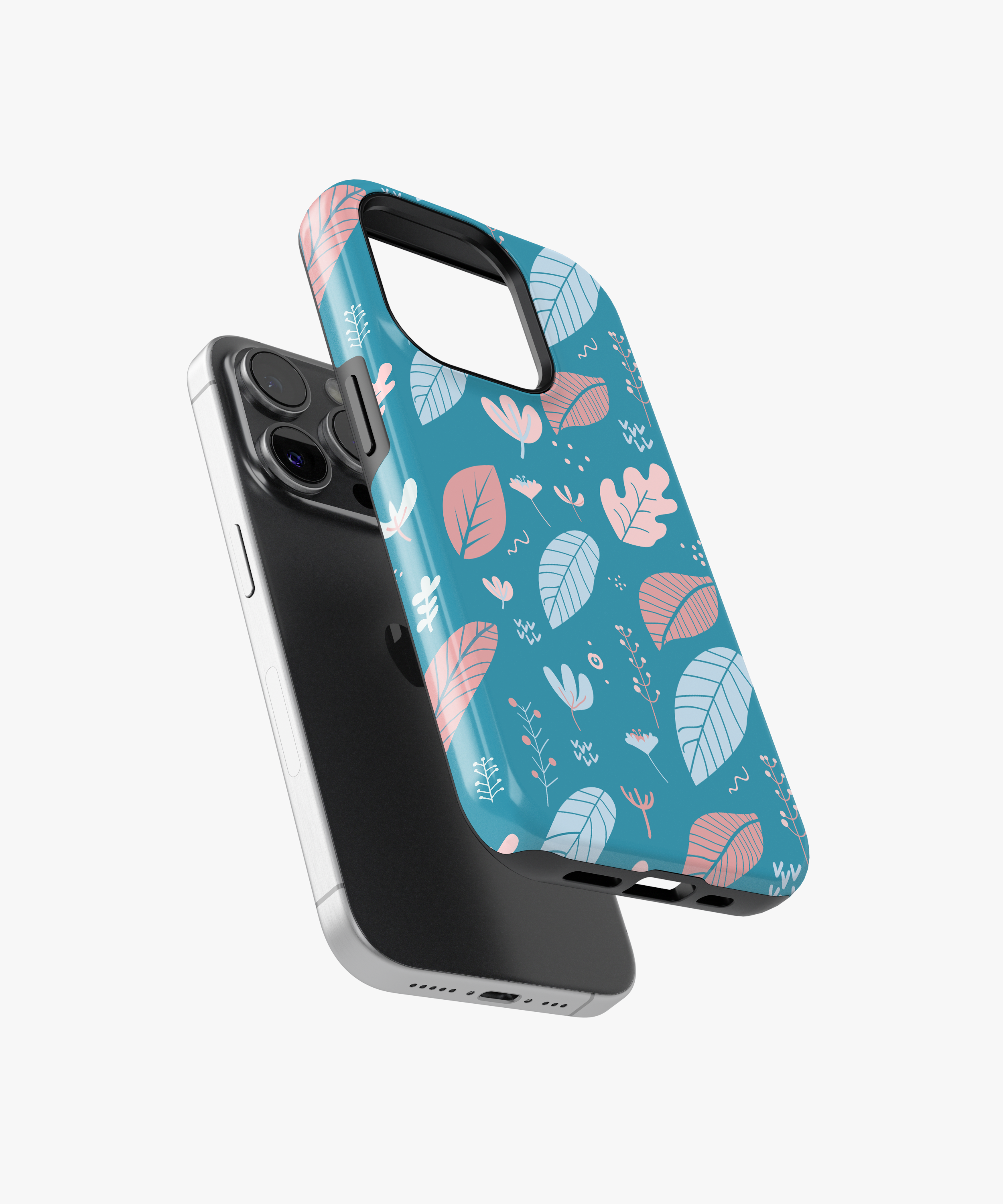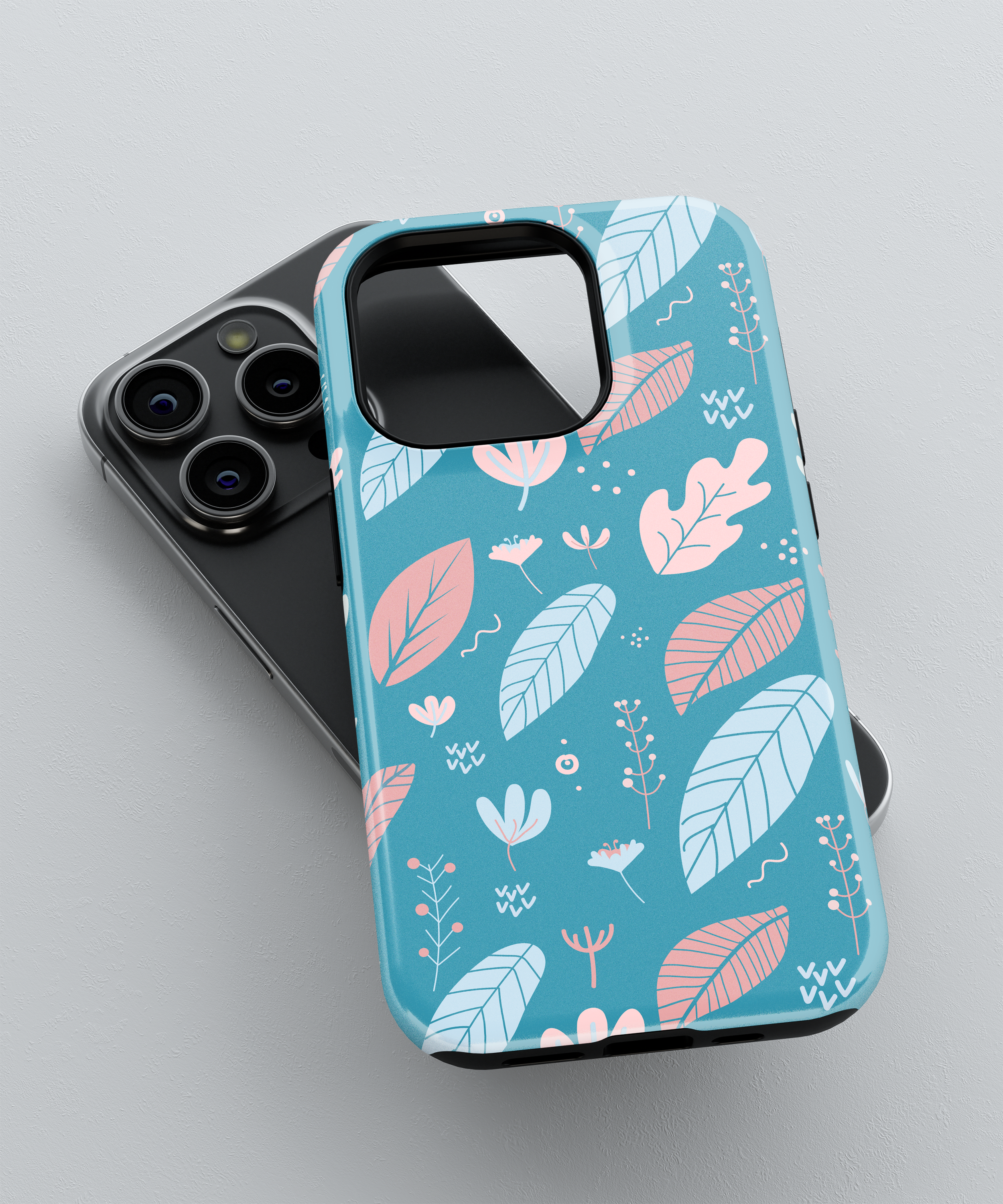 Teal Botanical Phone Case – Pastel Leaves and Flowers