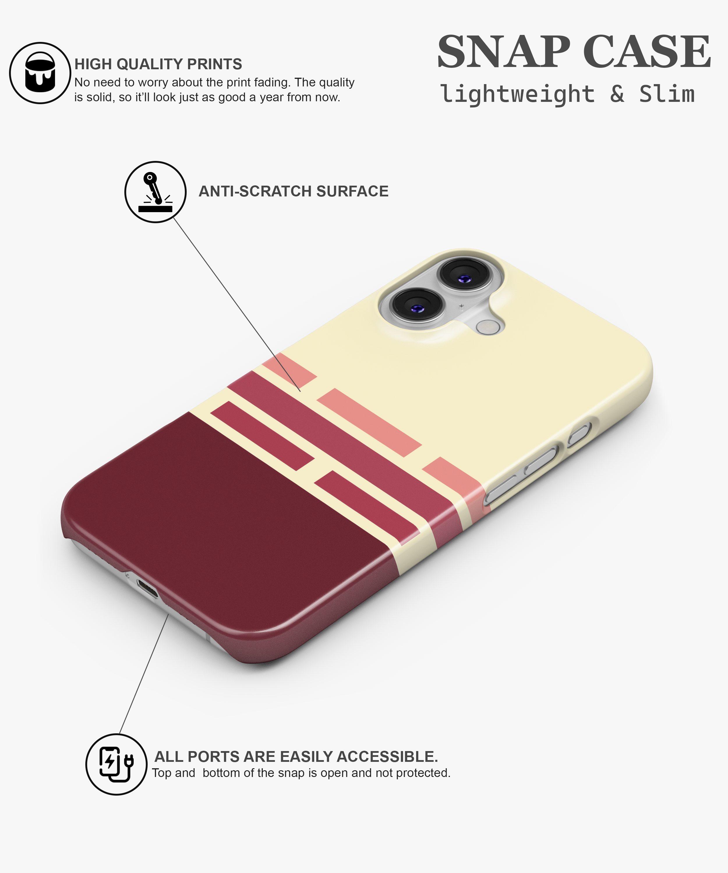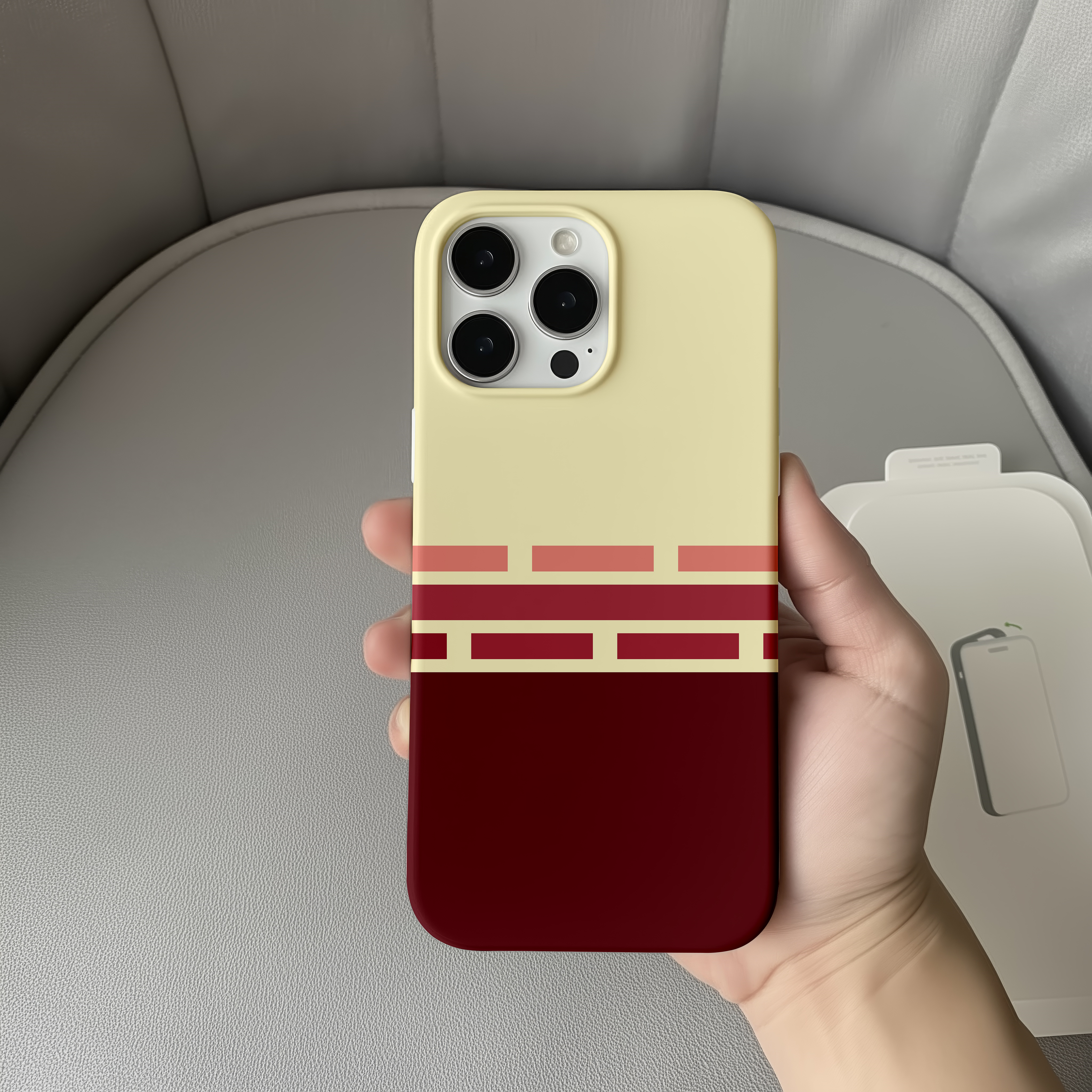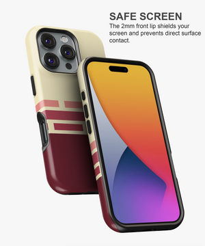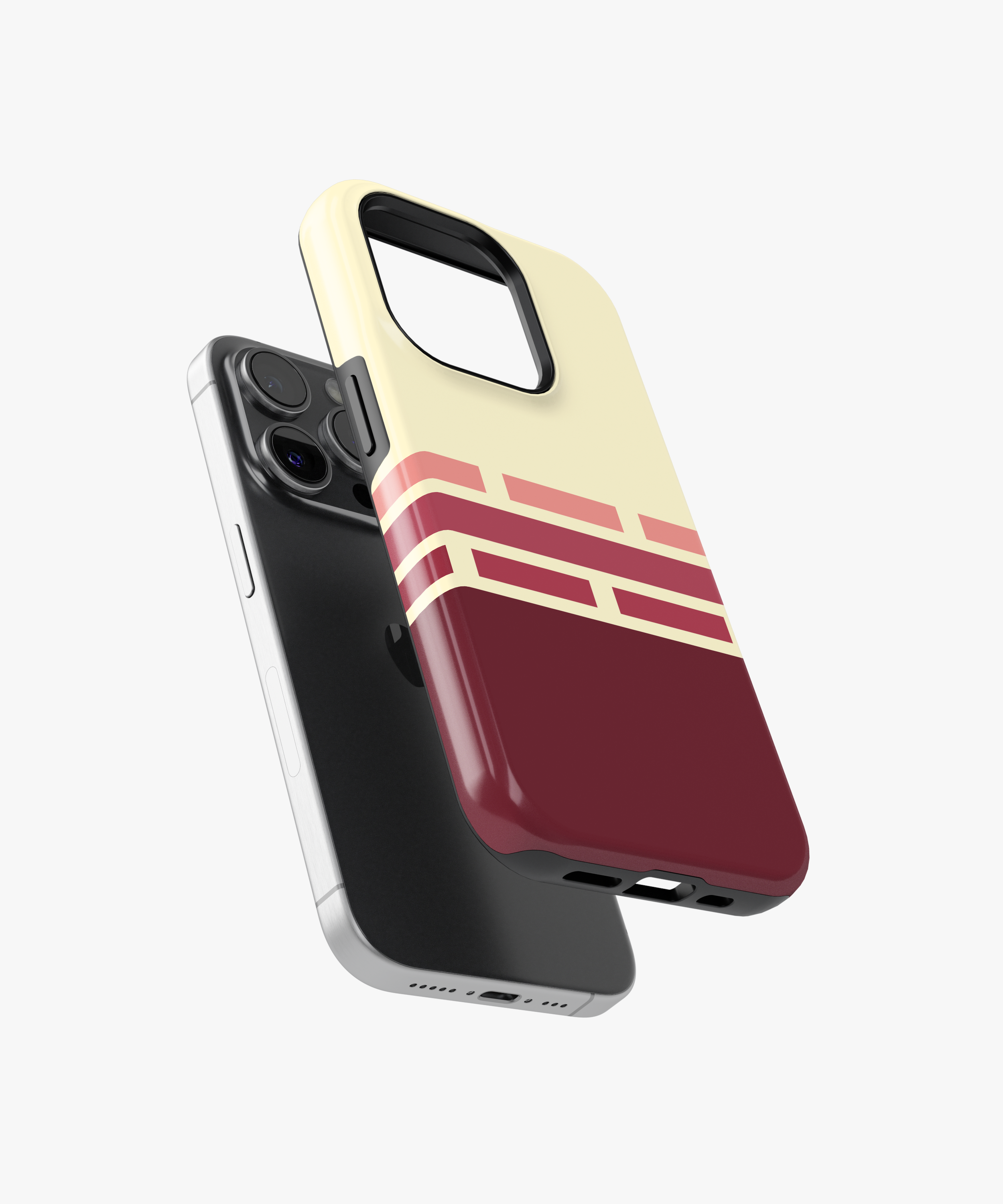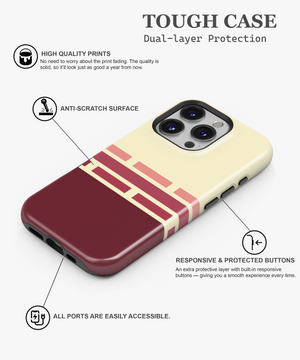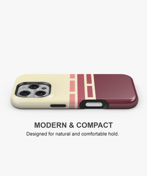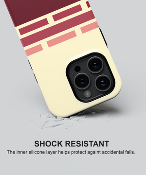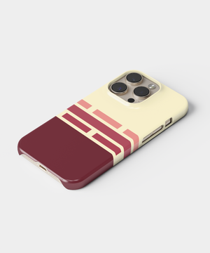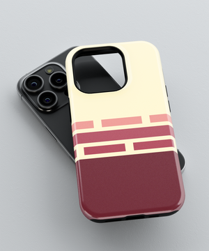 Cream and deep burgundy phone case with retro geometric brick stripes in soft rose tones, giving a warm vintage graphic look. Slim yet protective, this minimal striped cover shields your phone from daily drops and scratches and fits popular iPhone and Samsung models.